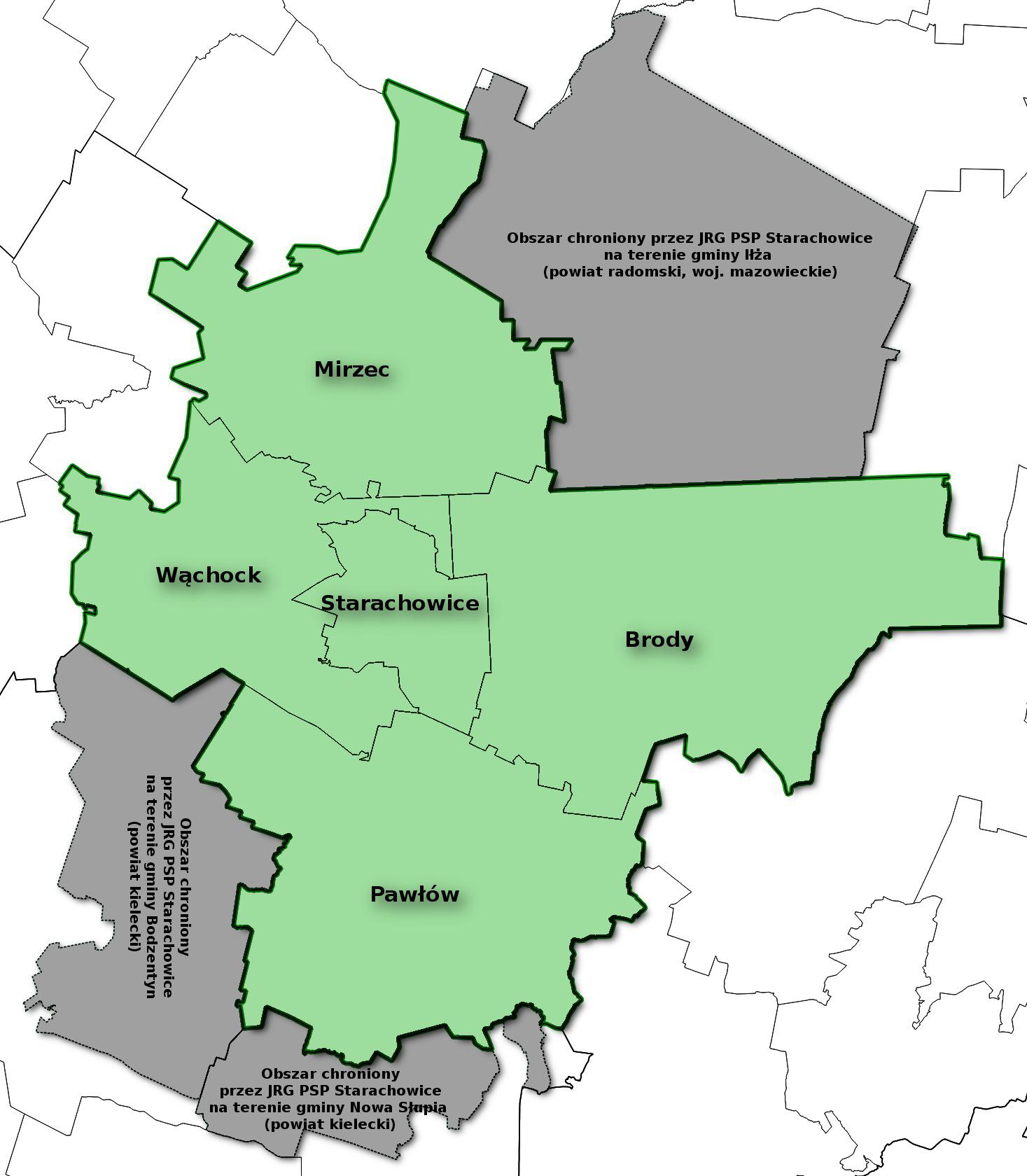 Teren działania Komendy Powiatowej Państwowej Straży Pożarnej w Starachowicach obejmuje powierzchnię 523 km2, zaś liczba ludności to ok. 100 tys. mieszkańców.