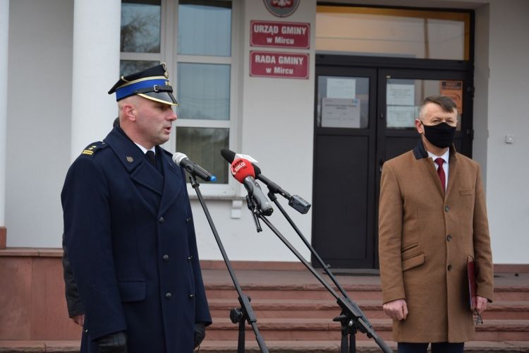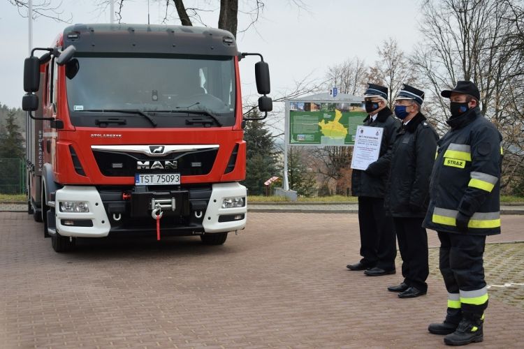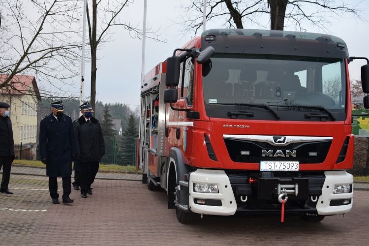 19 grudnia 2020r. na placu przed budynkiem Urzędu Gminy w Mircu odbyło się uroczyste przekazanie średniego samochodu pożarniczego na podwoziu MAN GBA 2,5/16 dla Ochotniczej Straży Pożarnej z Tychowa Starego.