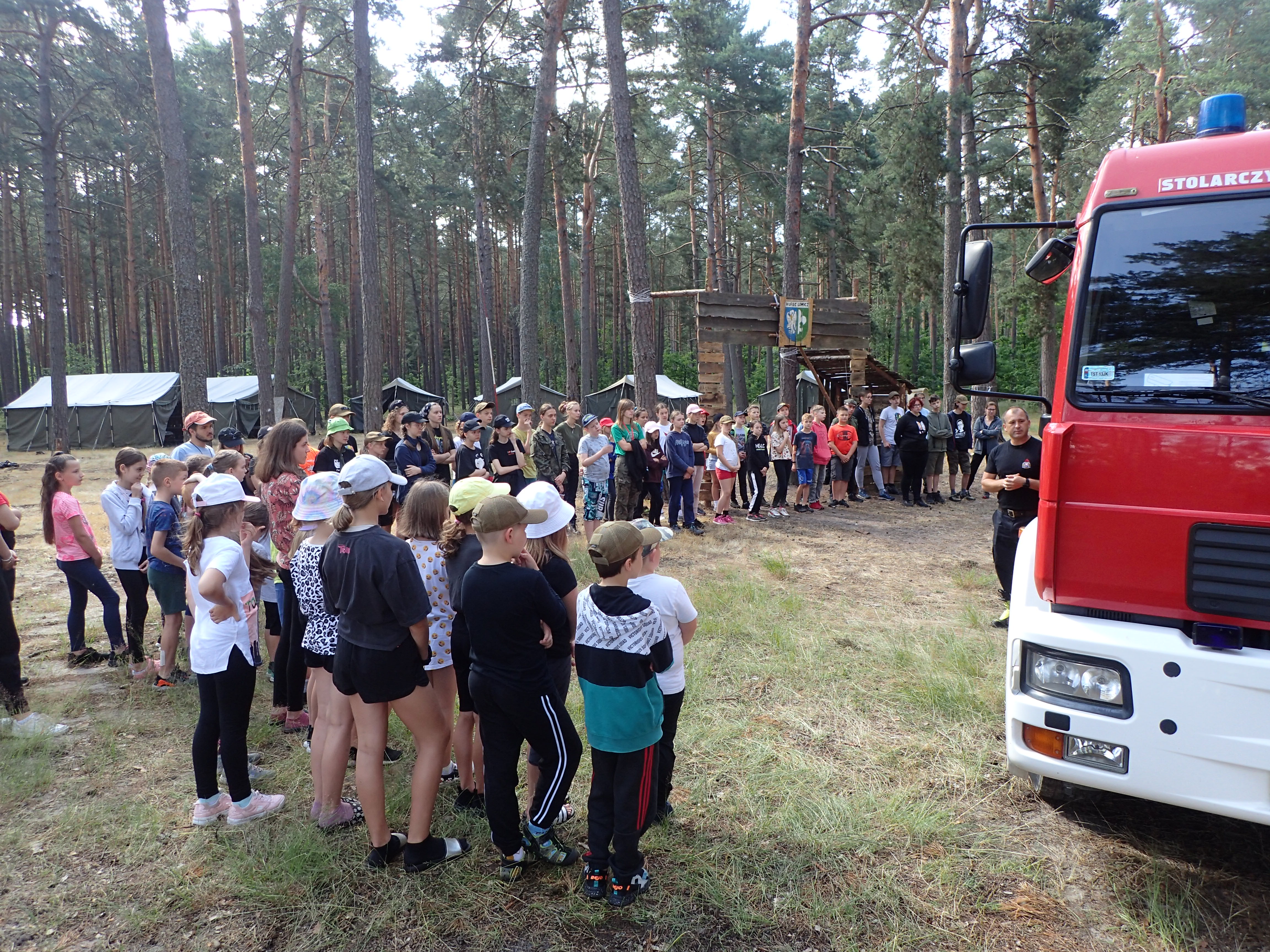 2 Lipca br. strażacy z Jednostki Ratowniczo-Gaśniczej w Starachowicach odwiedzili obóz harcerski zlokalizowany na terenie Harcerskiego Ośrodka Obozowego „Lubianka” przy ul. Szydłowskiego w Starachowicach. Uczestnicy obozu zostali zapoznani z zasadami bezpiecznego wypoczynku nad wodą oraz procedurami udzielania pierwszej pomocy. Strażacy przeprowadzili również pogadankę na temat zawodu strażaka wraz z pokazem sprzętu będącego na wyposażeniu ciężkiego samochodu ratowniczo - gaśniczego pełniącego codzienną służbę w podziale bojowym.