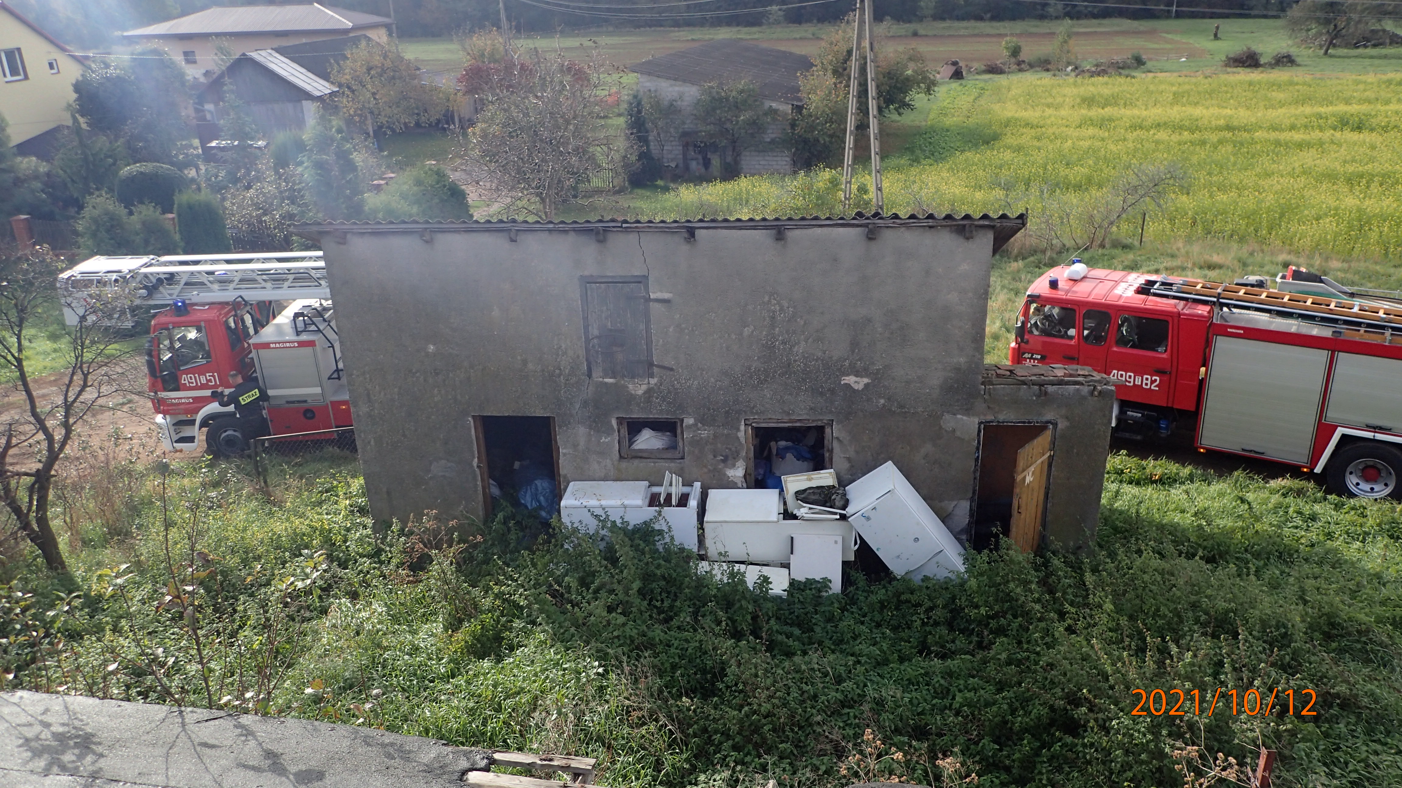 Na miejscu zdarzenia obecny był użytkownik nieruchomości, od którego KDR uzyskał informację, że w budynku nie ma żadnych osób.