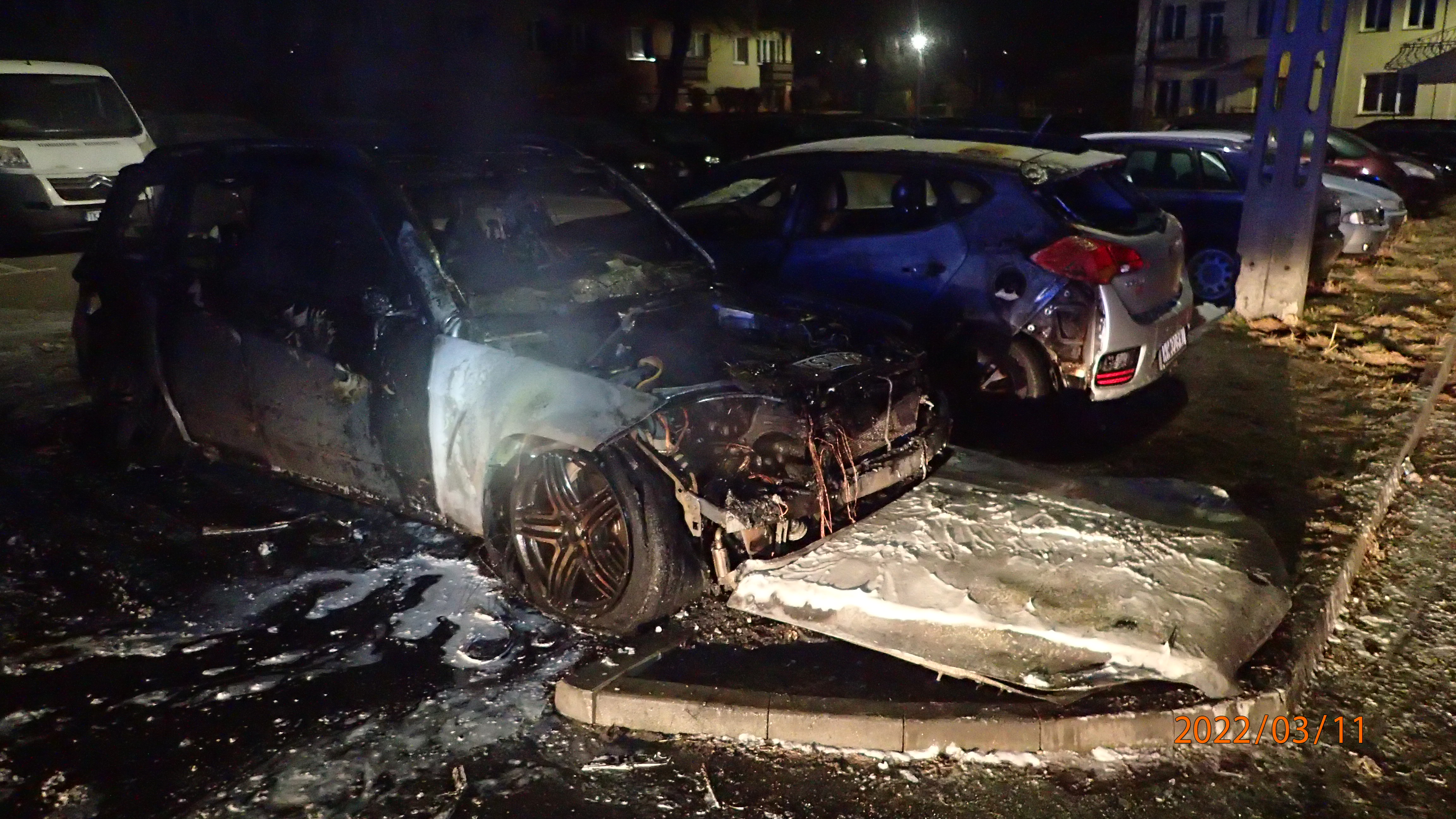 11.03.2022 roku o godz. 00:36 do stanowiska kierowania PSP w Starachowicach wpłynęło zgłoszenie o pożarze samochodu, stojącego na parkingu przy ul. Wojska Polskiego w Starachowicach.
