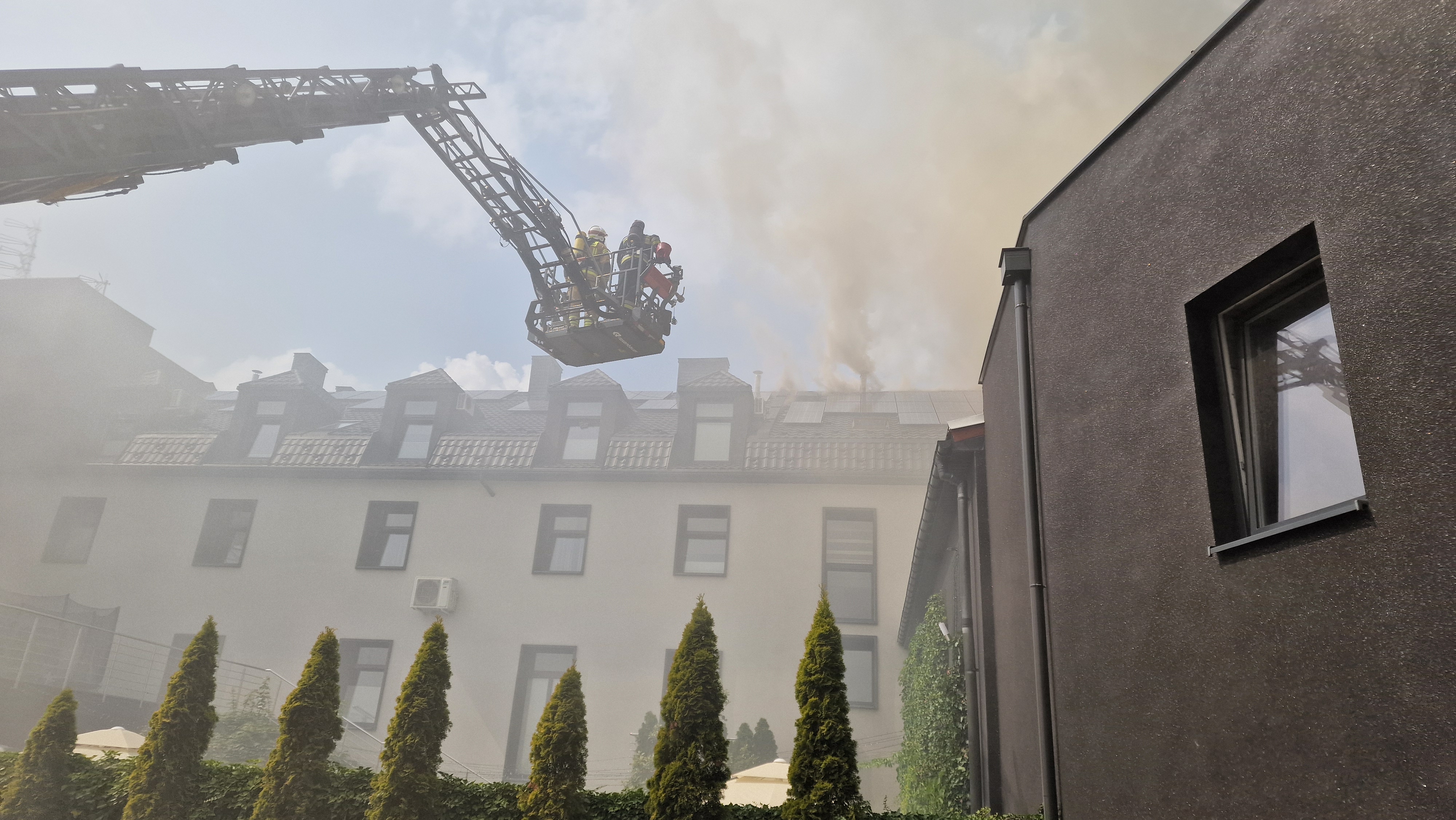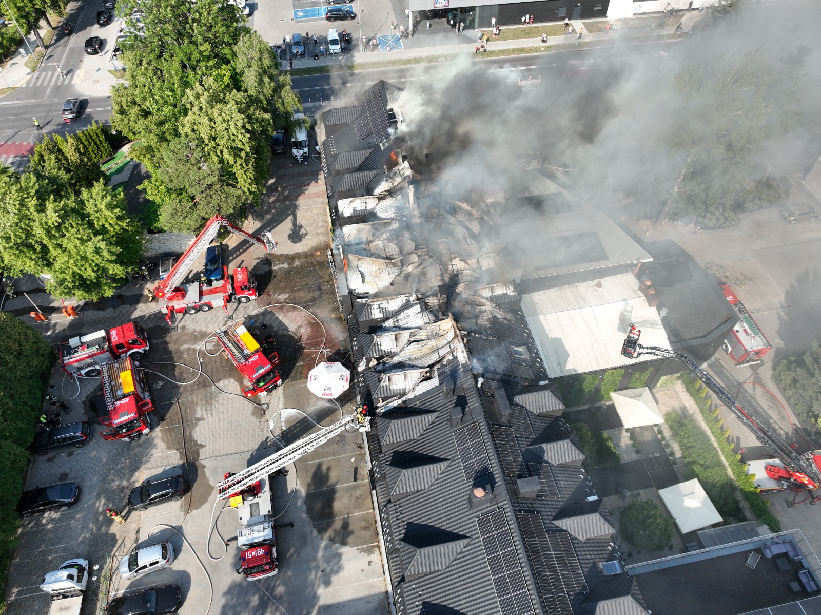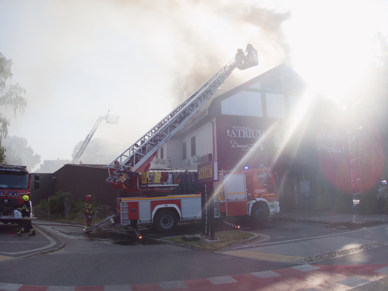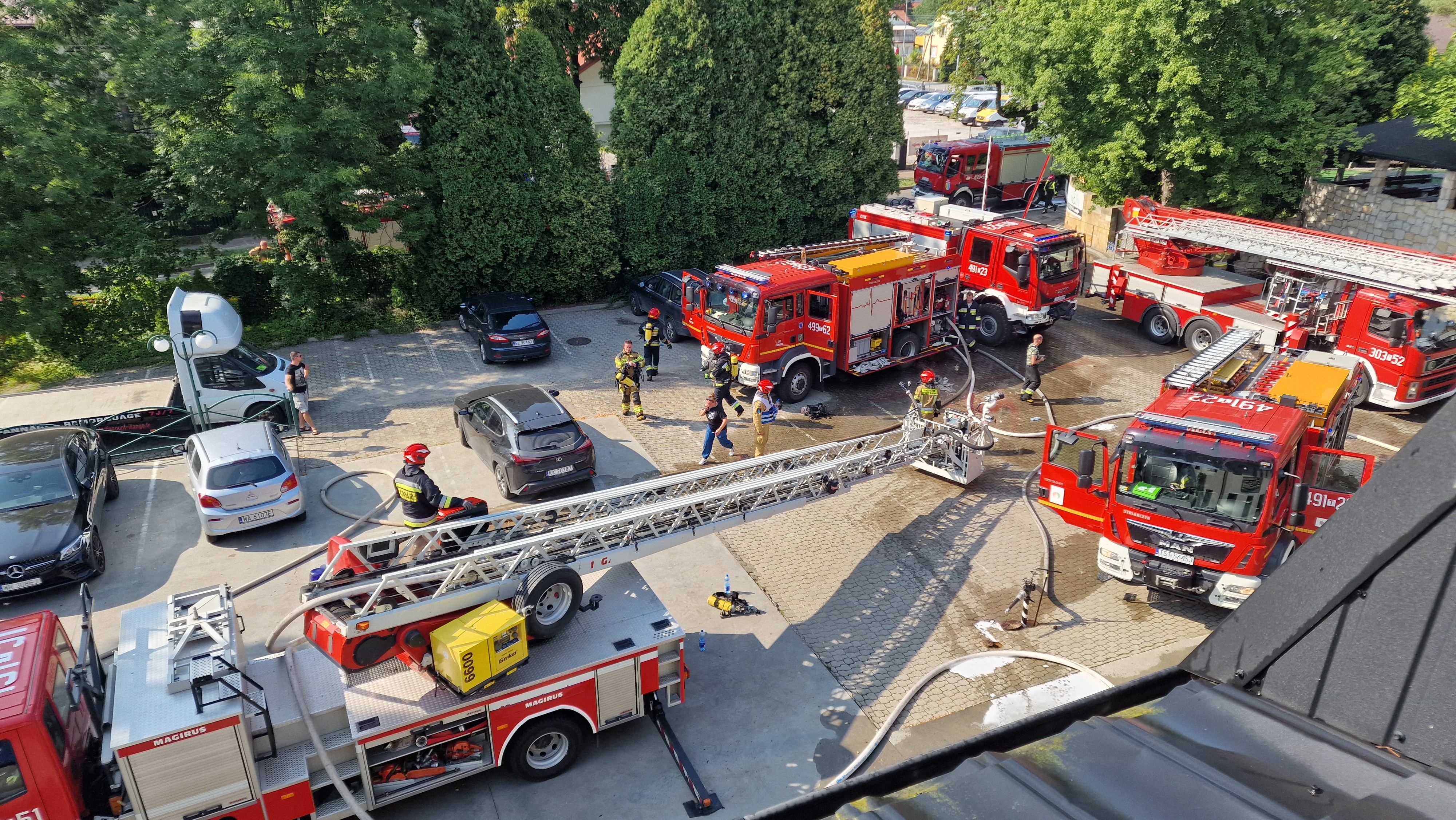 16 sierpnia 2025 r. około godziny 13:00 służby ratownicze zostały postawione w stan najwyższej gotowości po otrzymaniu zgłoszenia o pożarze poddasza hotelu przy ul. Bankowej w Starachowicach. Zgłoszenie wpłynęło do Komendy Powiatowej Państwowej Straży Pożarnej o godzinie 12:41. Po przybyciu na miejsce zdarzenia strażacy zastali rozwinięty pożar na poddaszu nowej części budynku. Ogień obejmował dach o wymiarach 40x14 metrów, pokryty blachą. Jeszcze przed przybyciem pierwszych jednostek, 50 osób – zarówno gości, jak i pracowników hotelu – opuściło budynek. Dowodzący akcją natychmiast zdecydował o zadysponowaniu dodatkowych sił i środków z terenu powiatu starachowickiego oraz z sąsiednich miast: Kielc, Ostrowca Świętokrzyskiego i Skarżyska-Kamiennej. W pierwszej fazie działań strażacy zabezpieczyli teren akcji, potwierdzili odłączenie mediów (prąd, gaz) i sprawdzili wszystkie pokoje hotelowe pod kątem ewentualnej obecności osób. W szczytowym momencie podawano łącznie siedem prądów wody: sześć w natarciu (w tym cztery z drabin mechanicznych i podnośników) oraz jeden w obronie wnętrza budynku. Na miejscu działała grupa operacyjna Komendy Wojewódzkiej PSP w Kielcach. Decyzję o przejęciu dowodzenia podjęli kolejno: zastępca Komendanta Powiatowego PSP w Starachowicach st. bryg. Paweł Borek , a później zastępca Świętokrzyskiego Komendanta Wojewódzkiego PSP w Kielcach bryg. Michał Jankowski. W nocy z 16 na 17 sierpnia trwało dozorowanie pogorzeliska przy użyciu kamery termowizyjnej. Następnego dnia, o 8:30 rozpoczęto rozbiórkę zniszczonych elementów konstrukcji i poszycia dachu, które mogły stanowić zagrożenie. Przyczyny pożaru ustala Komenda Powiatowa Policji w Starachowicach przy współpracy z biegłym z zakresu pożarnictwa.