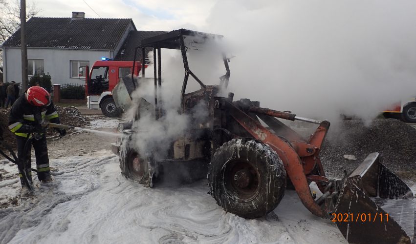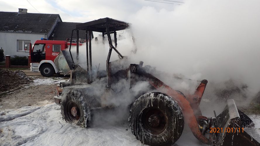 11 stycznia o godz. 12:40 do Stanowiska Kierowania Państwowej Straży Pożarnej w Starachowicach wpłynęło zgłoszenie o pożarze ładowarki. Po dojeździe na miejsce zdarzenia zastępów straży pożarnej stwierdzono rozwinięty pożar pojazdu. Działania zastępu polegały na zabezpieczeniu miejsca zdarzenia oraz podaniu jednego prądu piany przez strażaków zabezpieczonych w sprzęt ochrony układu oddechowego. Na koniec skontrolowano cały pojazd kamerą termowizyjną w celu wykluczenia ukrytych zarzewi ognia. W działaniach udział brały dwa zastępy z Jednostki Ratowniczo-Gaśniczej w Starachowicach oraz OSP Ambrożów.