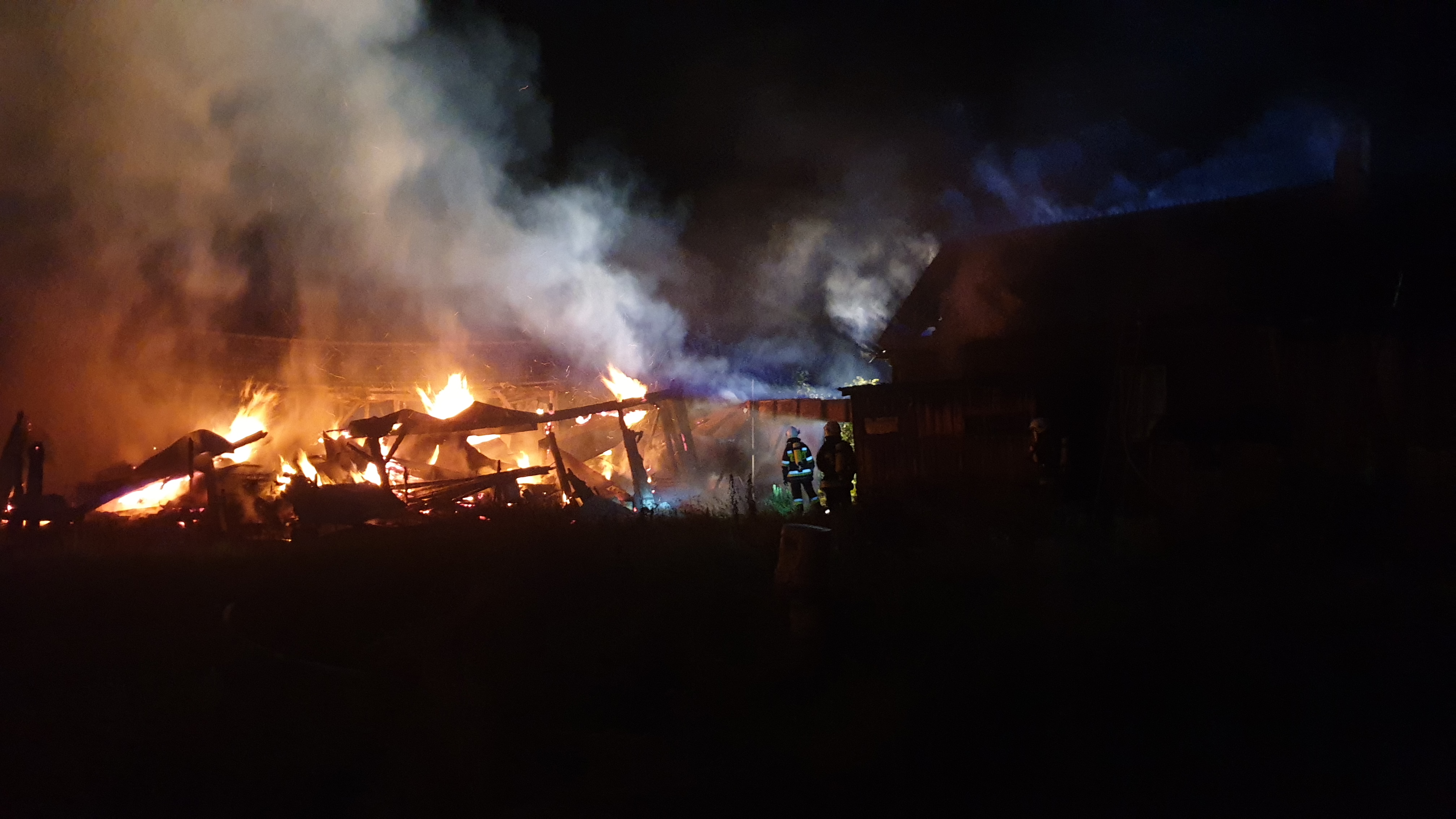 z jednoczesnym przelewaniem ich wodą. Na miejsce zdarzenia przybył Komendant Powiatowy Państwowej Straży Pożarnej w Starachowicach, który przejął dowodzenie. Następnie ratownicy przystąpili do częściowej rozbiórki poddasza budynku mieszkalnego. Pogorzelisko zostało skontrolowane kamerą termowizyjną w celu wykluczenia ukrytych zarzewi ognia. W chwili zdarzenia budynek mieszkalny nie był zamieszkiwany. Podczas prowadzenia działań na miejscu obecny był patrol Policji. W działaniach trwających blisko 7 godzin udział brało 11 zastępów PSP i OSP w tym 45 strażaków.