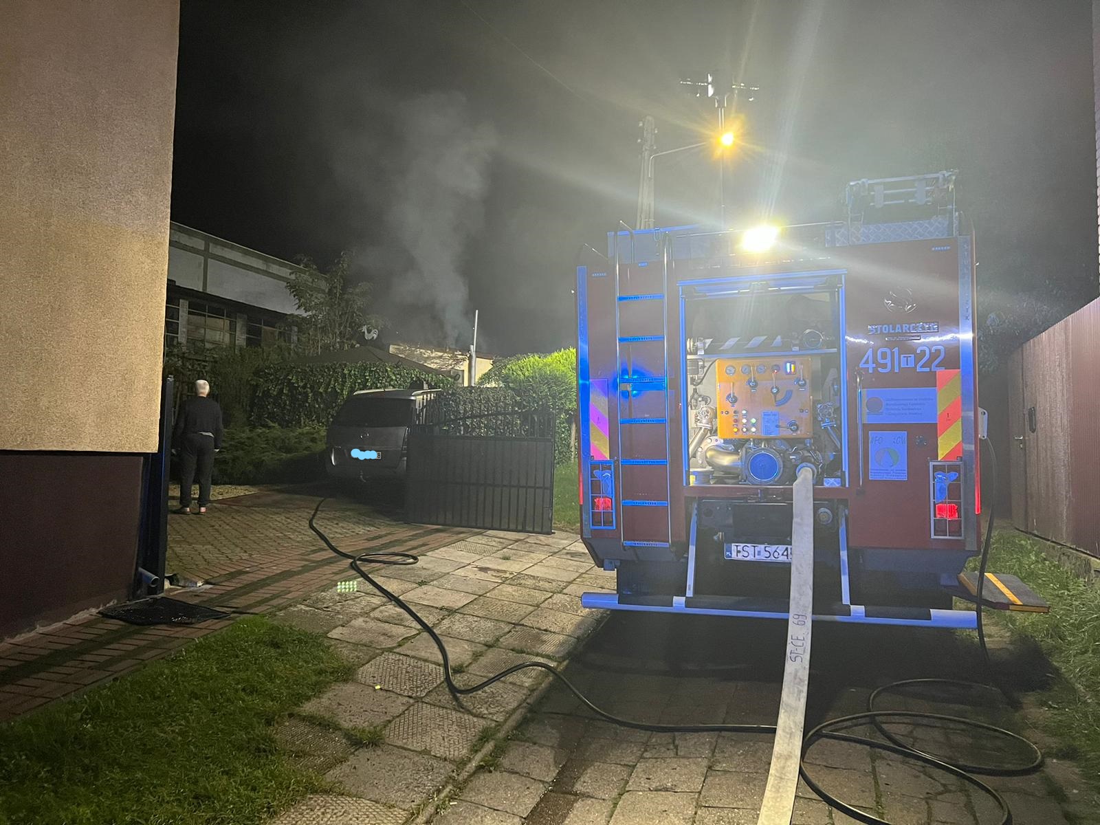 Zgłoszenie nie zawierało informacji o osobach poszkodowanych. Po dojeździe zastępów z JRG Starachowice na miejsce zdarzenia stwierdzono pożar wnętrza budynku gospodarczego znajdującego się w głębi posesji. Na miejscu obecny był patrol Policji oraz właściciel nieruchomości, który przekazał informację, że w budynku nie było żadnych osób. Działania zastępów straży pożarnej polegały na zabezpieczeniu miejsca zdarzenia, oświetleniu terenu akcji oraz podaniu prądu wody w natarciu na palące się wnętrze budynku przez ratowników zabezpieczonych w sprzęt ochrony układu oddechowego.