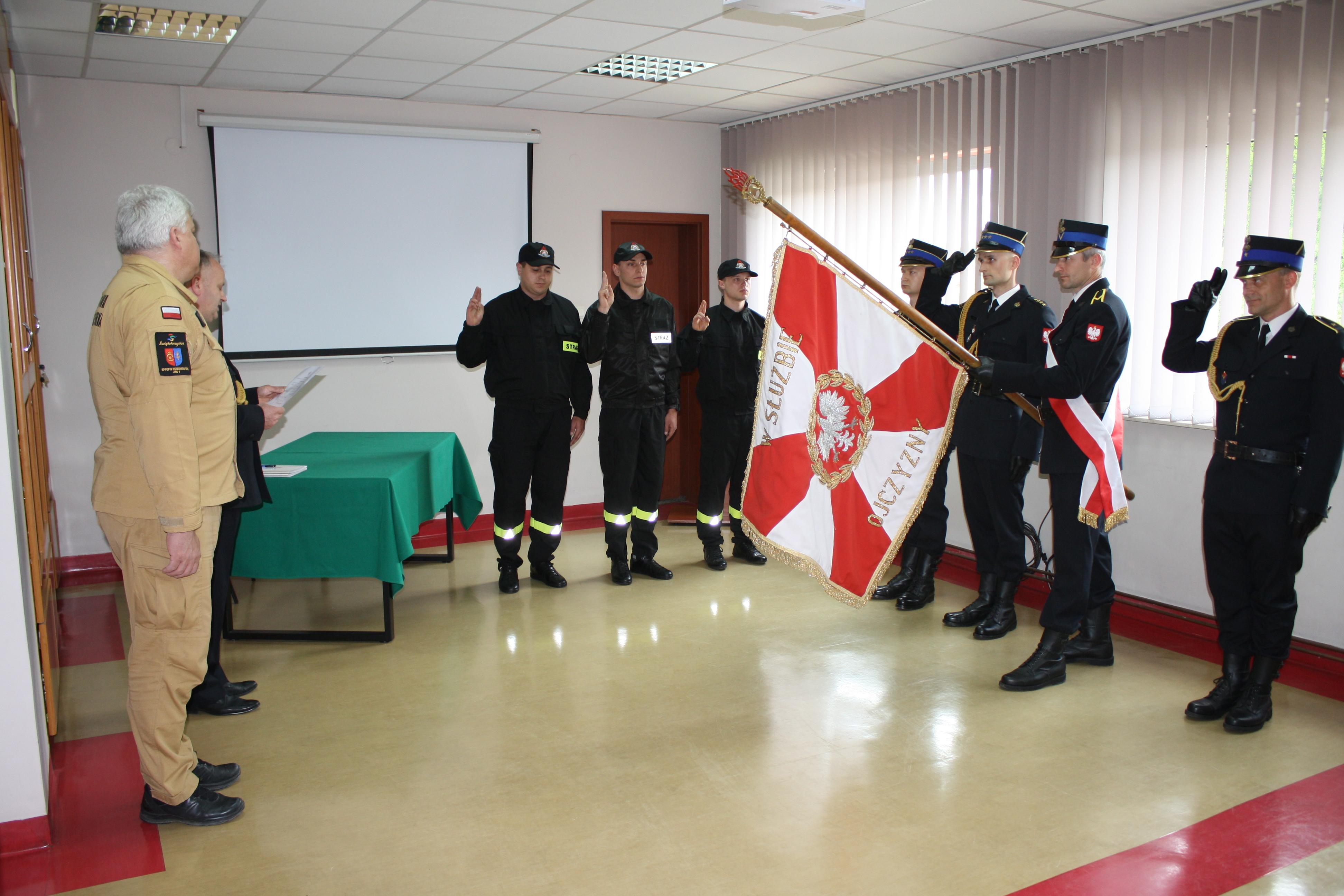 Ślubowanie przyjął Komendant Powiatowy PSP mł. bryg. Sławomir Zięba w obecności strażaków i pracowników komendy.