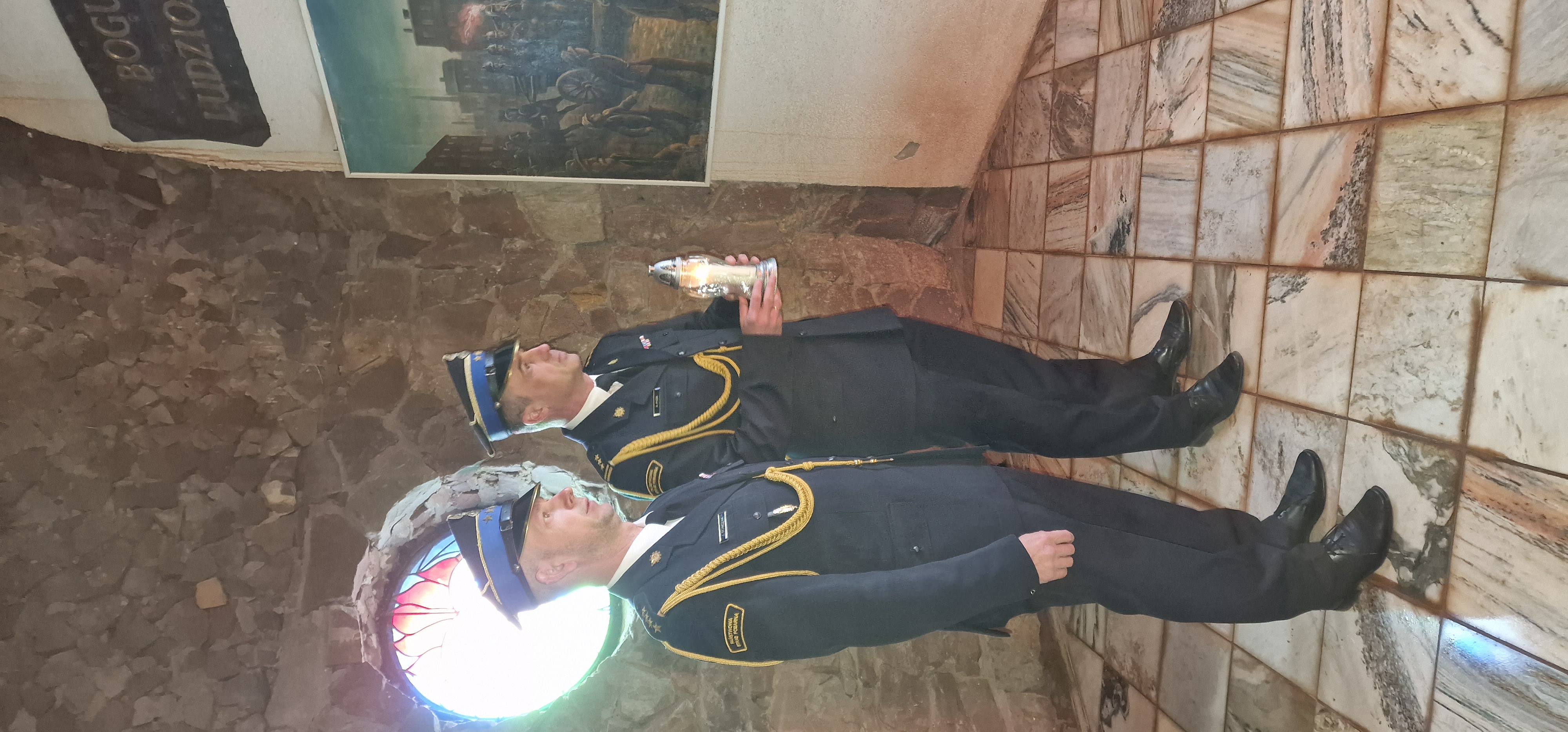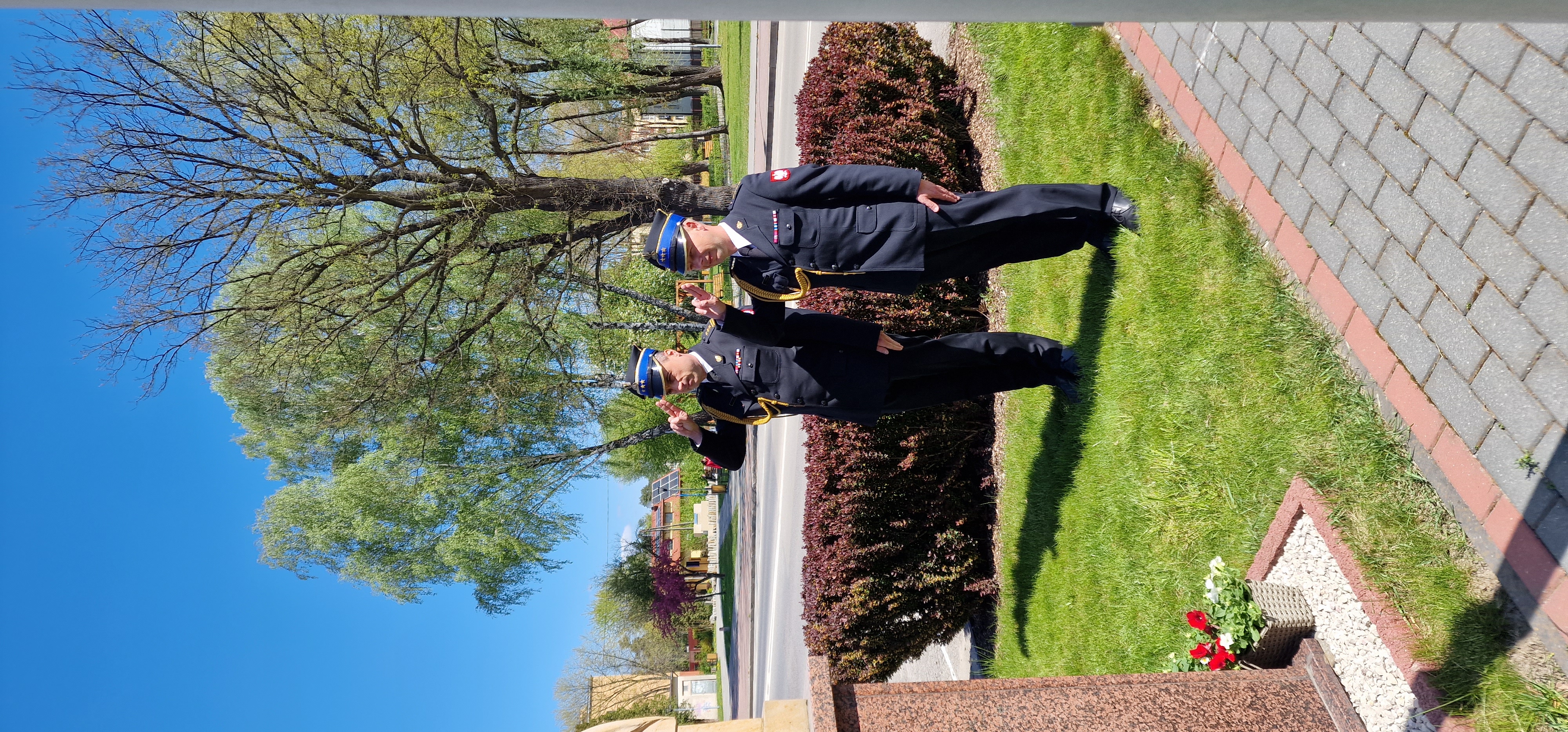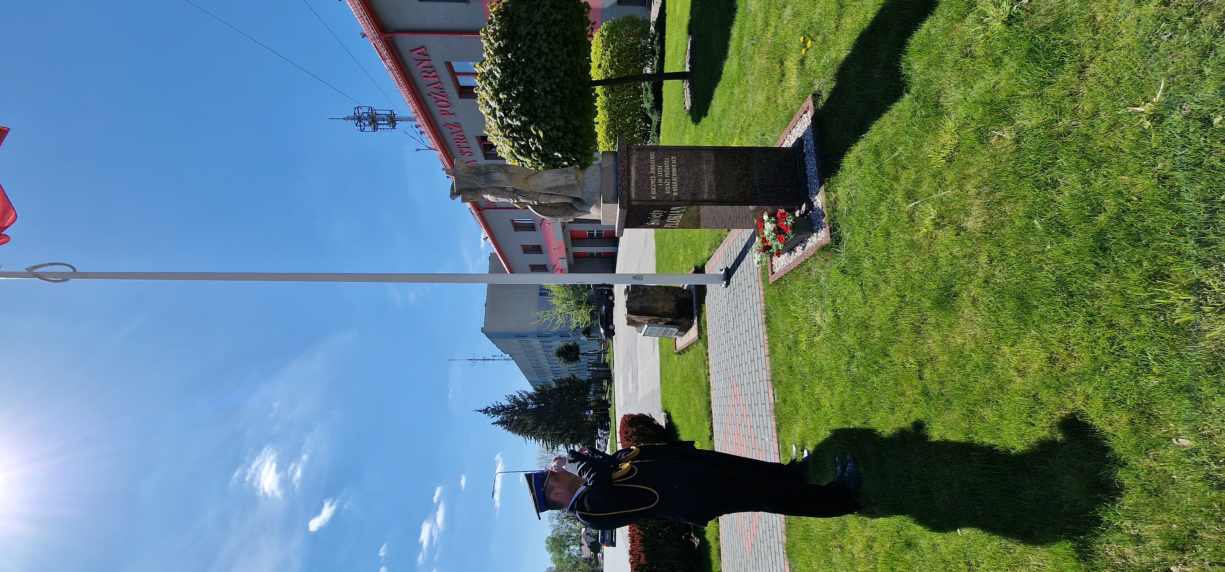 Zastępca Komendanta Powiatowego PSP w Starachowicach st. bryg. Andrzej Pyzik wraz z Dowódcą JRG st. kpt. Jarosławem Sobczakiem oddali honor pod posągiem św. Floriana, który znajduje się przed budynkiem Komendy Powiatowej oraz zapalili znicz w kaplicy św. Floriana przy Sanktuarium w Kałkowie-Godowie.