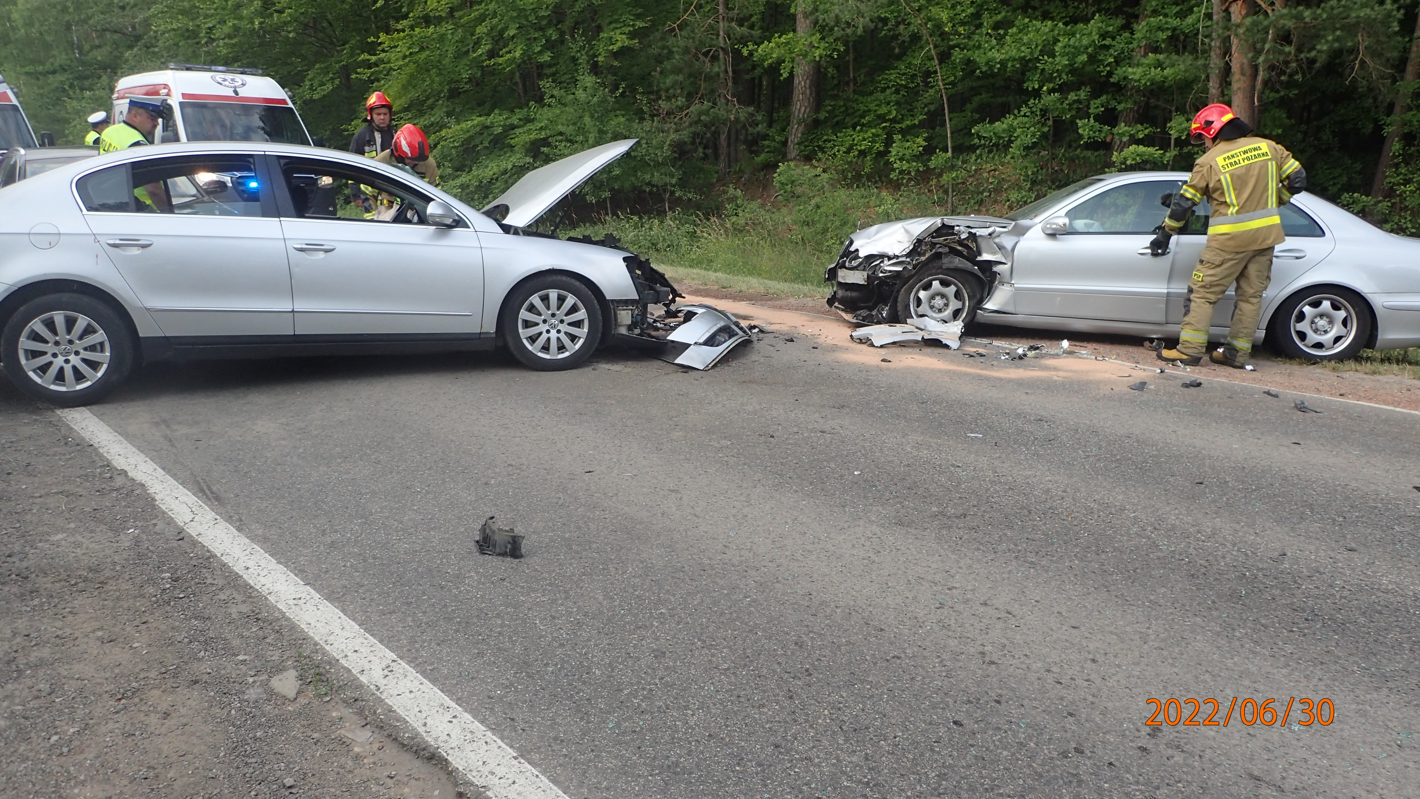 30 czerwca 2022 r po godz. 17 do stanowiska kierowania KP PSP w Starachowicach wpłynęło zgłoszenie o zderzeniu dwóch samochodów osobowych na leśnym odcinku drogi wojewódzkiej 756 Starachowice - Rzepin.
