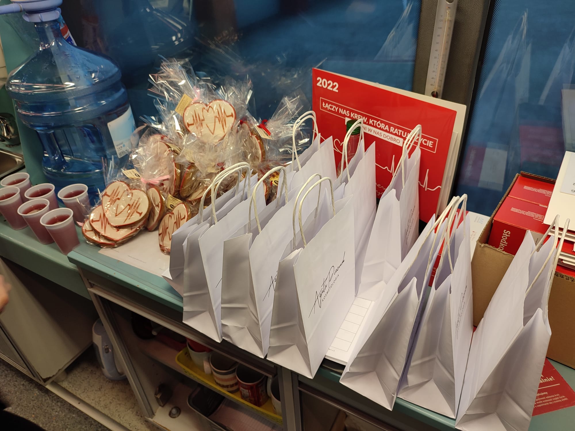 Do akcji w naszej komendzie po raz kolejny przyłączyła się Cukiernia Nova, która specjalnie dla krwiodawców wykonała przepiękne piernikowe słodkie serca oraz inne wypieki. Również Kwiaciarnia „ Zielony Zakątek”, która towarzyszy nam na wszystkich akcjach poboru krwi, organizowanych w naszym powiecie, sponsorując przepyszną zupę gulaszową. Po raz kolejny drobne upominki dla Pań przygotował gabinet Agata Piecuch Kosmetologia. To zaangażowanie firm z naszego miasta w promowanie krwiodawstwa i wsparcie naszej akcji przyczyniło się do przygotowania poczęstunku dla każdego krwiodawcy i miłego spędzenia czasu w trakcie oczekiwania na oddanie krwi.