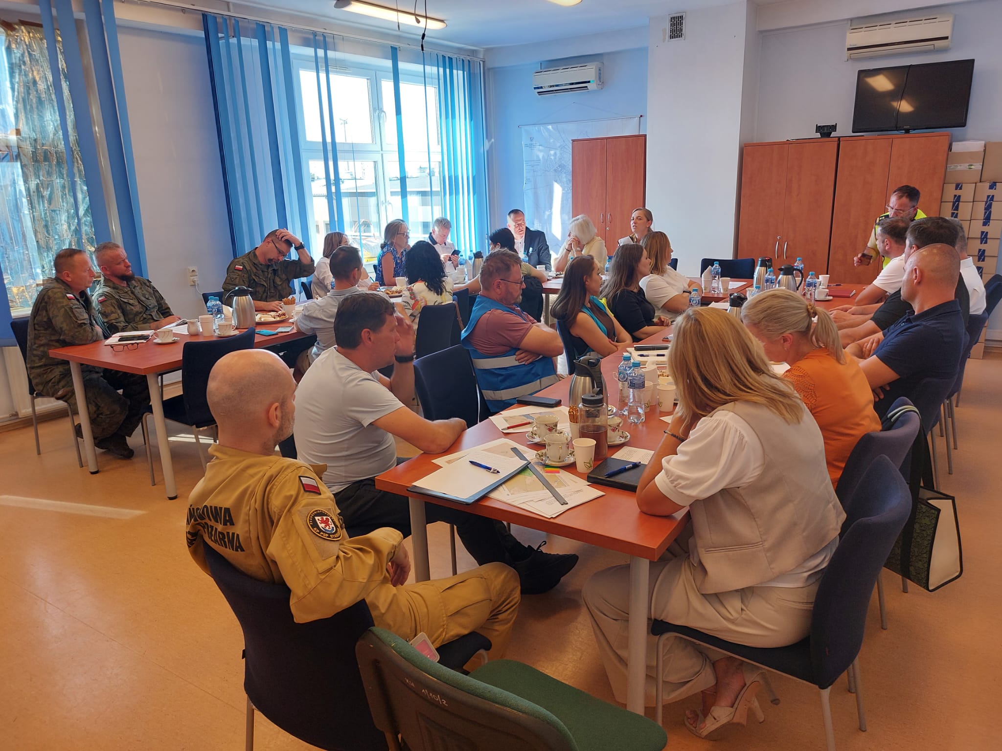Równolegle z ćwiczeniami praktycznymi na terenie KP PSP w Stargardzie odbywały się w formie gry decyzyjnej obrady zespołu wspierającego działania Kierującego Działaniami Ratowniczymi.