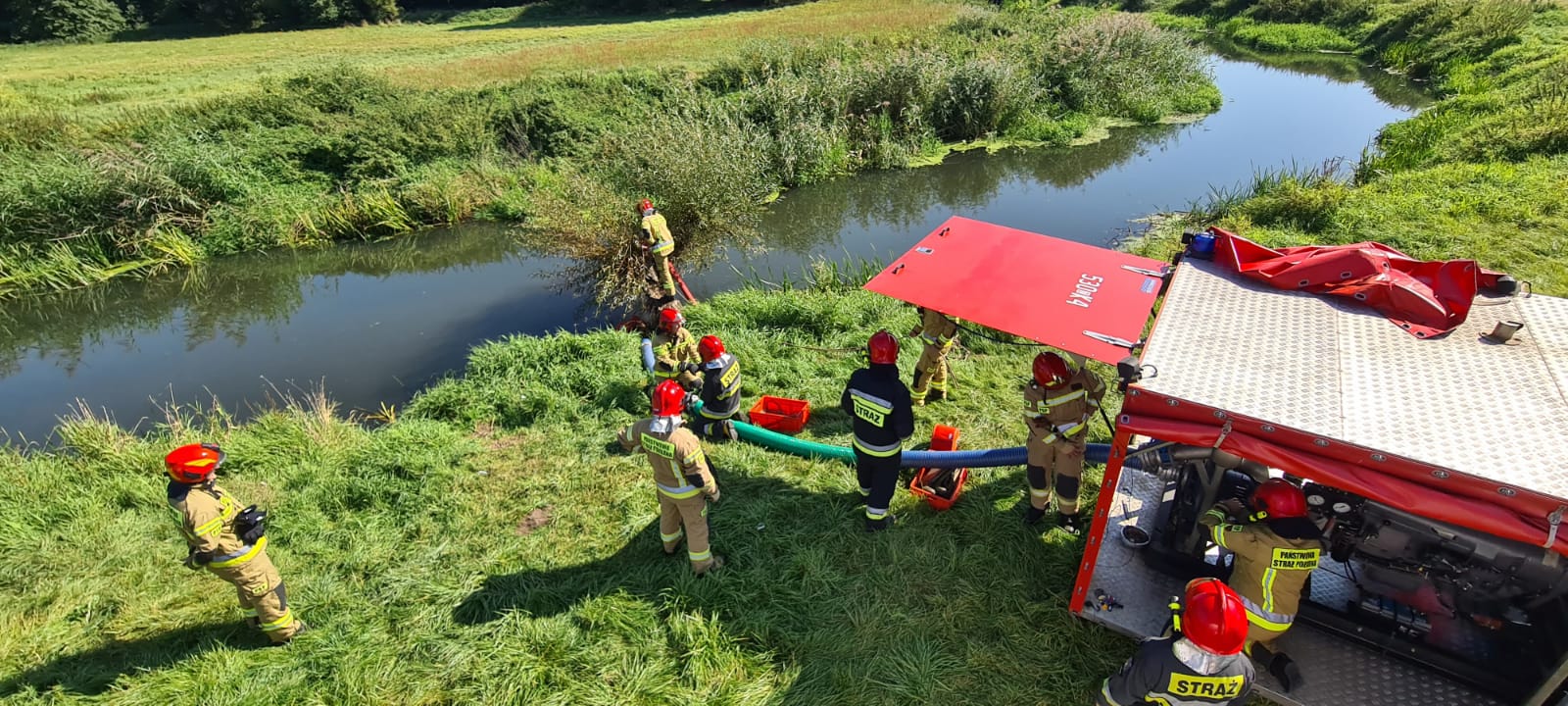 9 września 2021 r. na rzeką Ina w miejscowości Klępino odbyły się ćwiczenia z pompą dużej wydajności. Ćwiczenia miały na celu przypomnienie praktycznej obsługi oraz potwierdzenie sprawności agregatu pompowego.