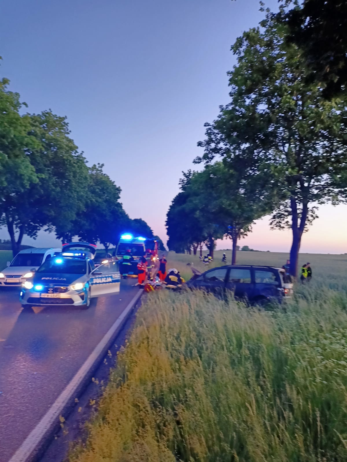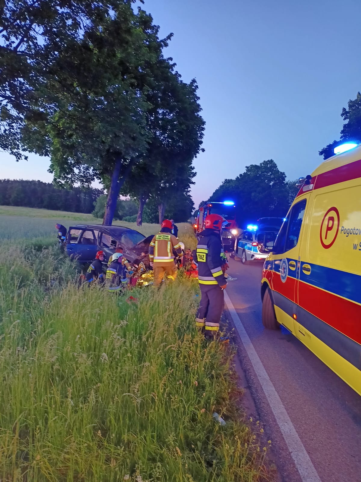 8 czerwca o godzinie 21:22 do Stanowiska Kierowania Komendanta Powiatowego w Stargardzie wpłynęło zgłoszenie o dachowaniu samochodu osobowego. Do zdarzenia zadysponowano 3 zastępy straży pożarnej (JRG Stargard, OSP Gogolewo, OSP Marianowo). Po przybyciu i zabezpieczeniu terenu akcji potwierdzono zgłoszenie. Pojazd znajdował się na poboczu drogi, a wszyscy pasażerowie znajdowali się na zewnątrz pojazdu. Byli przytomni i kontaktowi. Działania strażaków polegały na odłączeniu akumulatora oraz udzieleniu kwalifikowanej pierwszej pomocy, w tym: przeprowadzenie badania urazowego, zabezpieczenie odcinka szyjnego kręgosłupa kołnierzem ortopedycznym, zastosowanie tlenoterapii biernej, unieruchomienie kończyny, w której wg badania wstępnego mogło dojść do złamania. Dodatkowo zabezpieczono pasażerów przed wychłodzeniem oraz udzielono im wsparcia psychicznego. Jedna osoba została zabrana przez Zespół Ratownictwa Medycznego do szpitala natomiast pozostałe zostały na miejscu zdarzenia. O godzinie 22:10 zakończono działania i zastępy powróciły do jednostek.