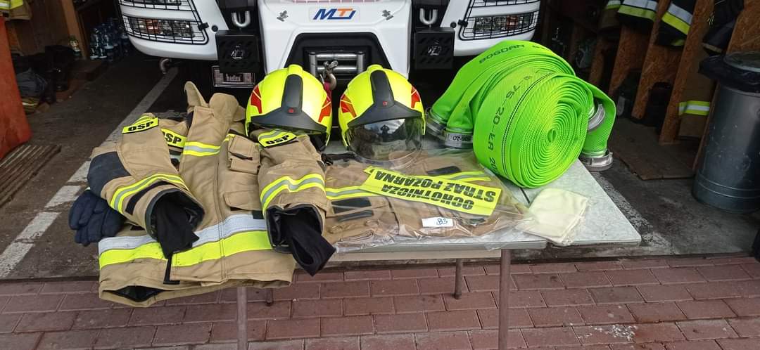 Jak również pozyskano sprzęt uzbrojenia i techniki specjalnej w postaci m.in. motopomp pływających, prądownic wodnych, węży tłocznych, zestawu klinów do stabilizacji, narzędzi dielektrycznych, ubrań żaroodpornych, kamery termowizyjnej, pilarki do drewna.