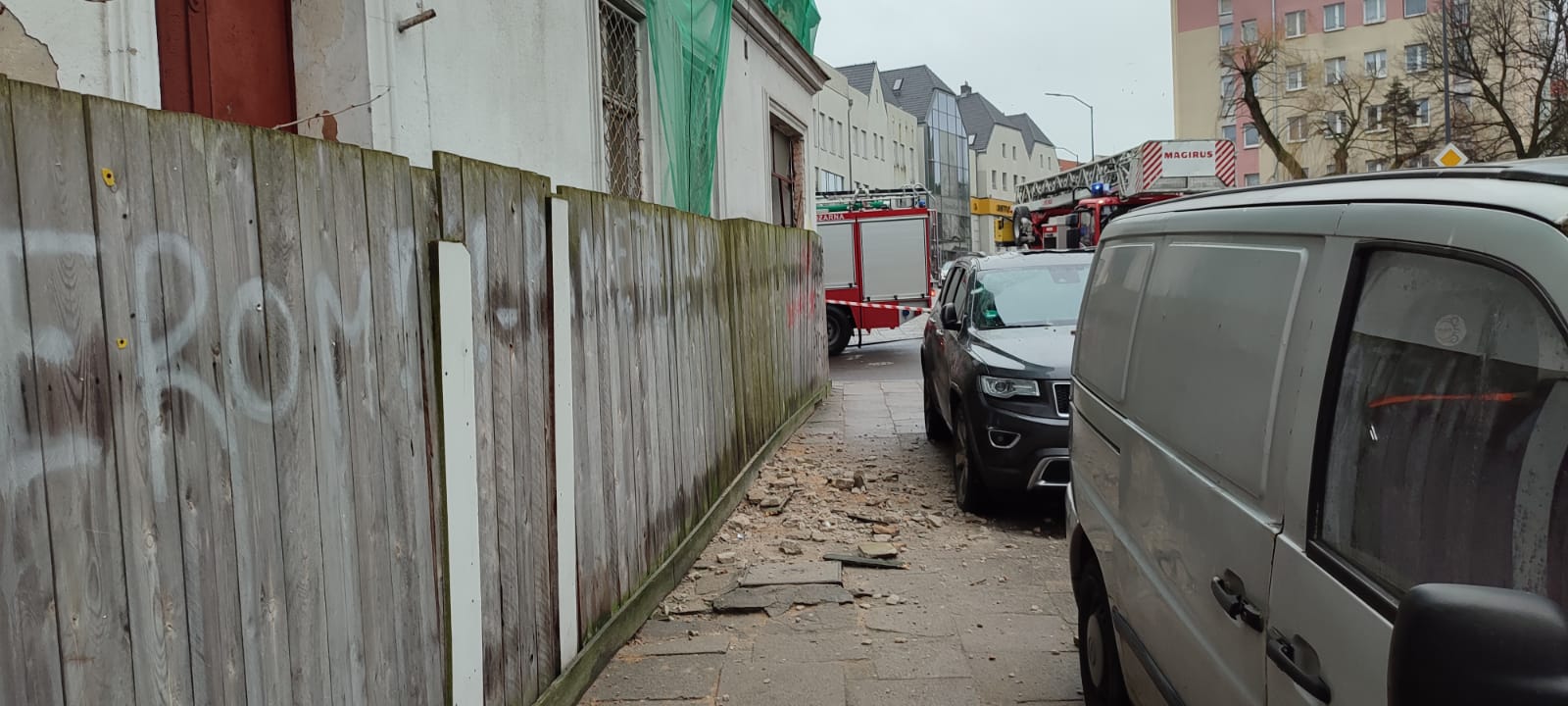 13 stycznia 2022 r. o godzinie 11:25 do do Stanowiska Kierowania Komendanta Powiatowego w Stargardzie wpłyneła informacja o obsunięciu się ściany przy ul. Bolesława Chrobrego w Stargardzie. Po przybyciu zastępów na miejsce zdarzenia stwierdzono że część elewacji budynku przeznaczonego do rozbiórki spadła na zaparkowany obok samochód osobowy. Dziania straży polegały na zabezpieczeniu terenu działań, sprawdzeniu terenu wokoło. Po zakończonych działaniach teren przekazano policji.