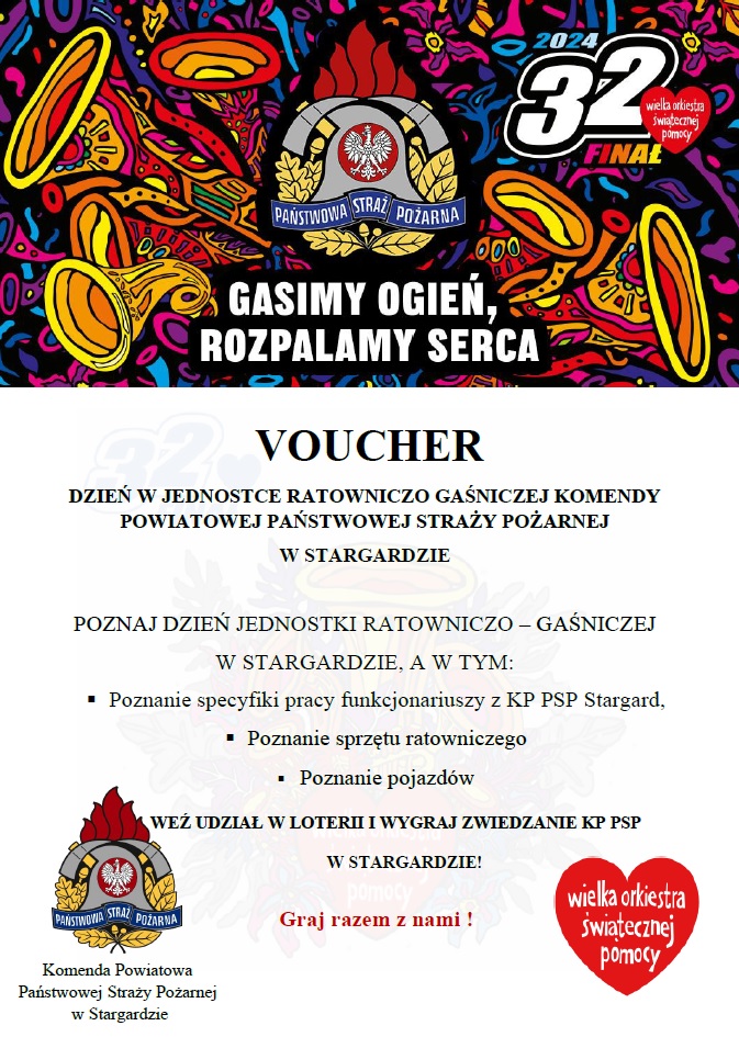 28 stycznia 2024 r. funkcjonariusze Komendy Powiatowej Państwowej Straży Pożarnej w Stargardzie wzięli udział w 32 finale Wielkiej Orkiestry Świątecznej Pomocy. W miejscowości Chociwel zorganizowano między innymi "zadymiony namiot", chętne osoby pod okiem strażaków mogły się przekonać jak wygląda ewakuacja w warunkach zadymienia. Strażacy przekazali również VOUCHER „dzień w Jednostce Ratowniczo Gaśniczej Komendy Powiatowej Państwowej Straży Pożarnej w Stargardzie", który został zlicytowany przez sztab Reptowo.