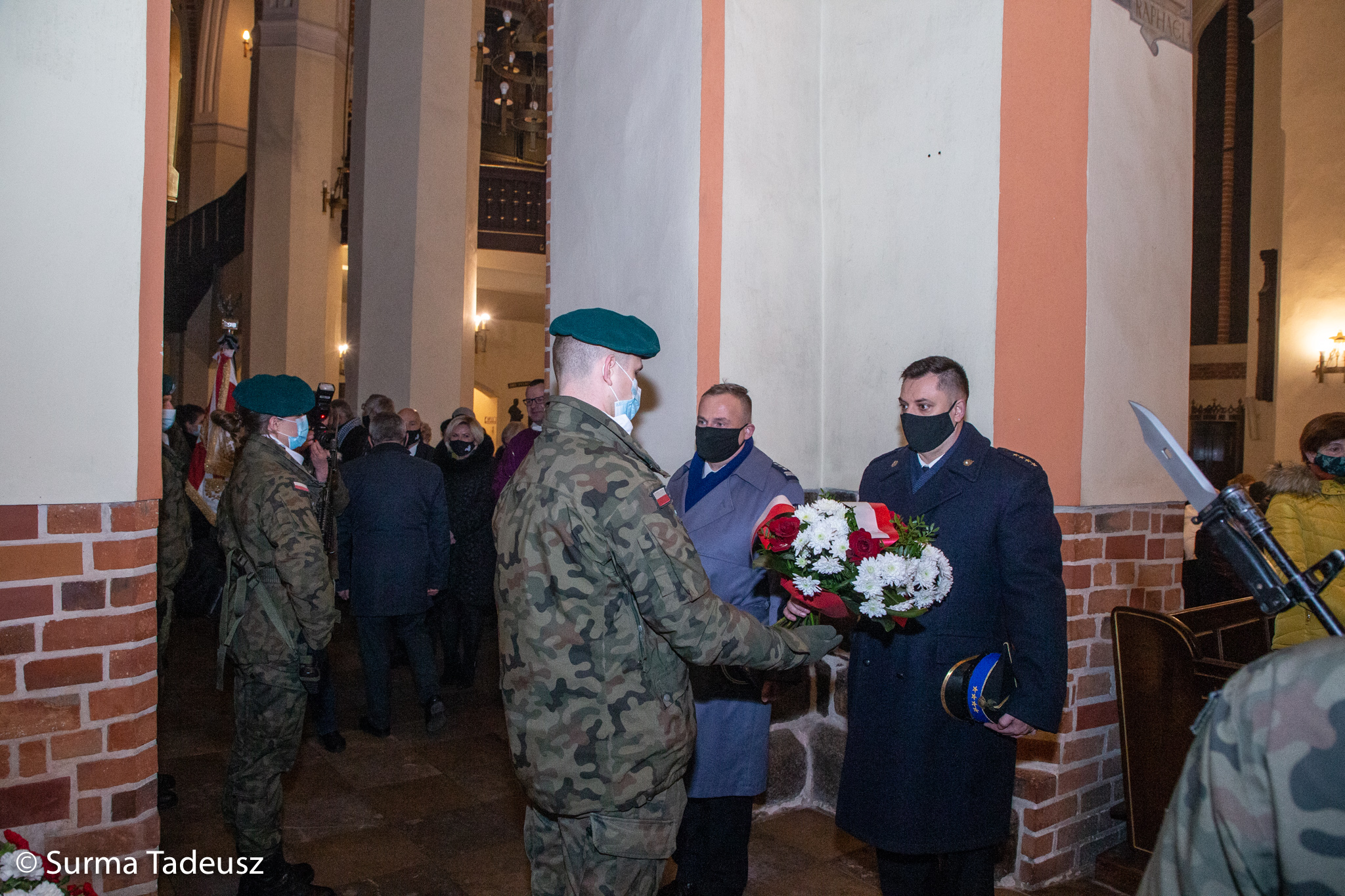 1 marca 2021 r. Komendant Powiatowy PSP st. kpt. Łukasz Stefański uczestniczył w uroczystościach z okazji Narodowego Dnia Pamięci „Żołnierzy Wyklętych”.