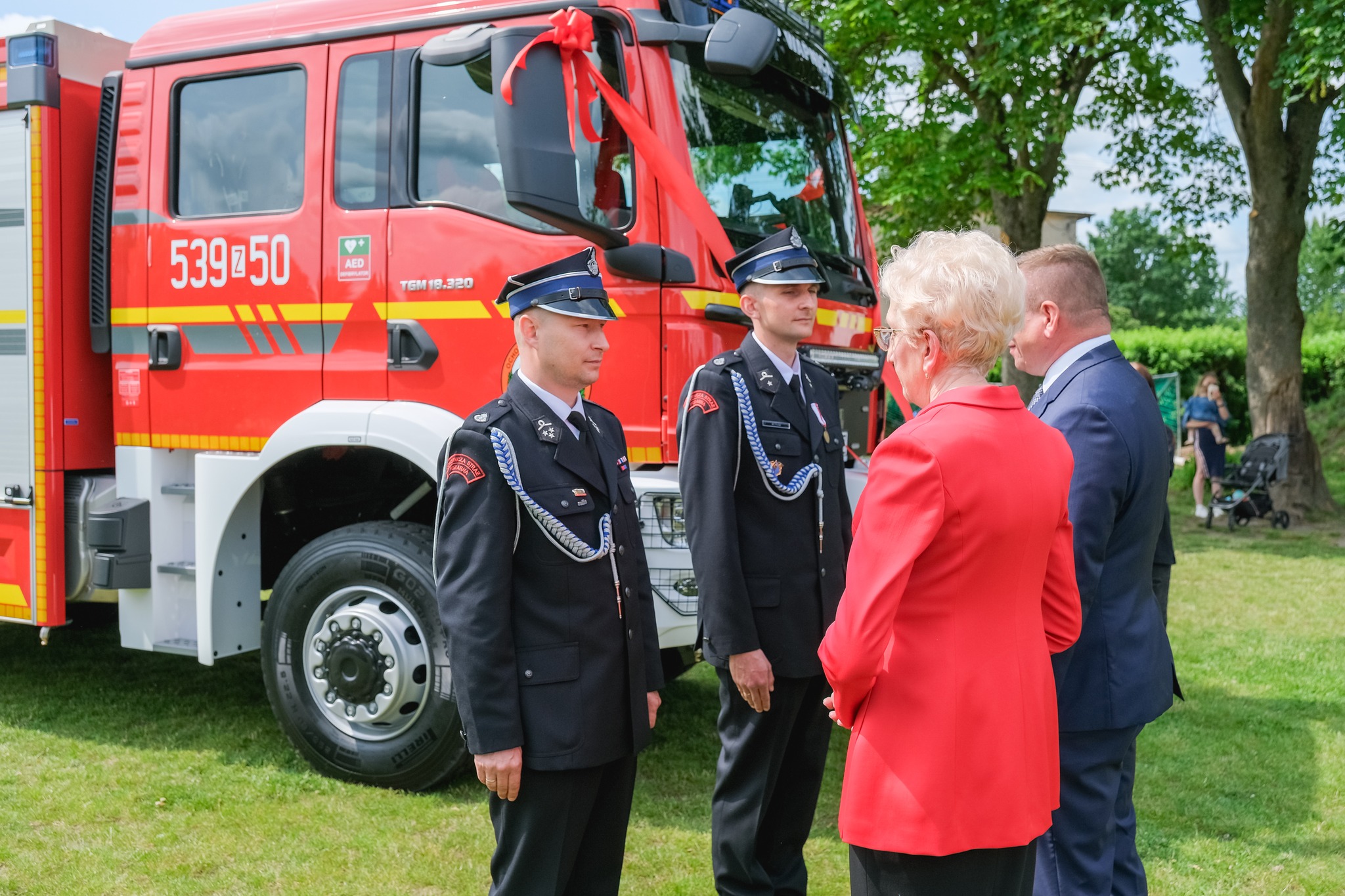 Kolejnym elementem uroczystości był akt przekazania nowego samochodu ratowniczo-gaśniczego. Kluczyki do samochodu przekazał Poseł na Sejm Rzeczypospolitej Polskiej - Pan Jarosław Rzepa wraz z Burmistrzem Suchania. Koszt zakupu pojazdu wyniósł 1 427 390 zł i został sfinansowany ze środków: