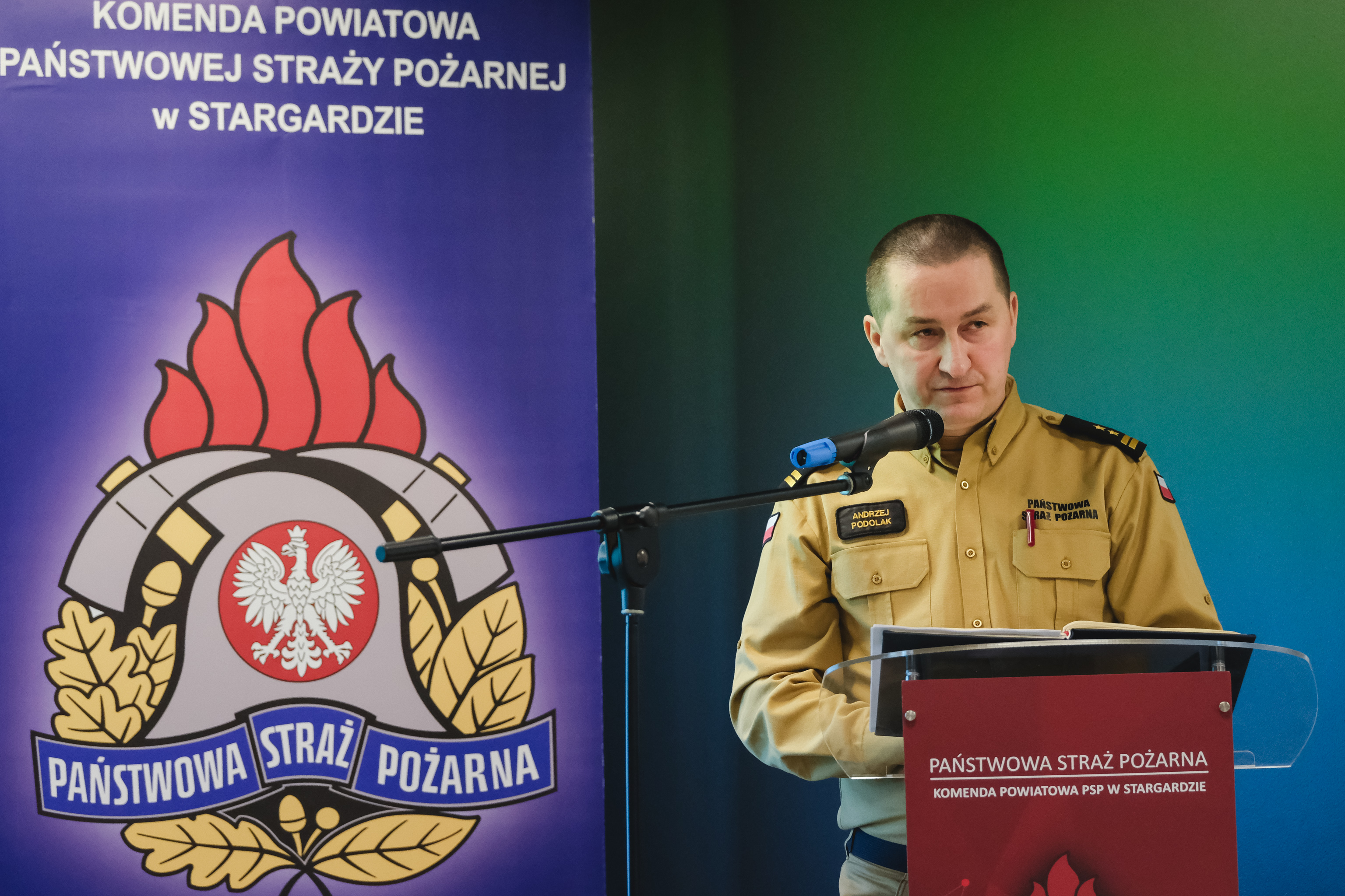 Po prezentacji Pani Komendant głos zabrał Zastępca Zachodniopomorskiego Komendanta Wojewódzkiego Państwowej Straży Pożarnej bryg. Andrzej Podolak, który na koniec swojego wystąpienia podziękował strażakom za zaangażowanie i poświęcenie w realizacji zadań służbowych oraz rozwój ochrony przeciwpożarowej w 2024 roku.