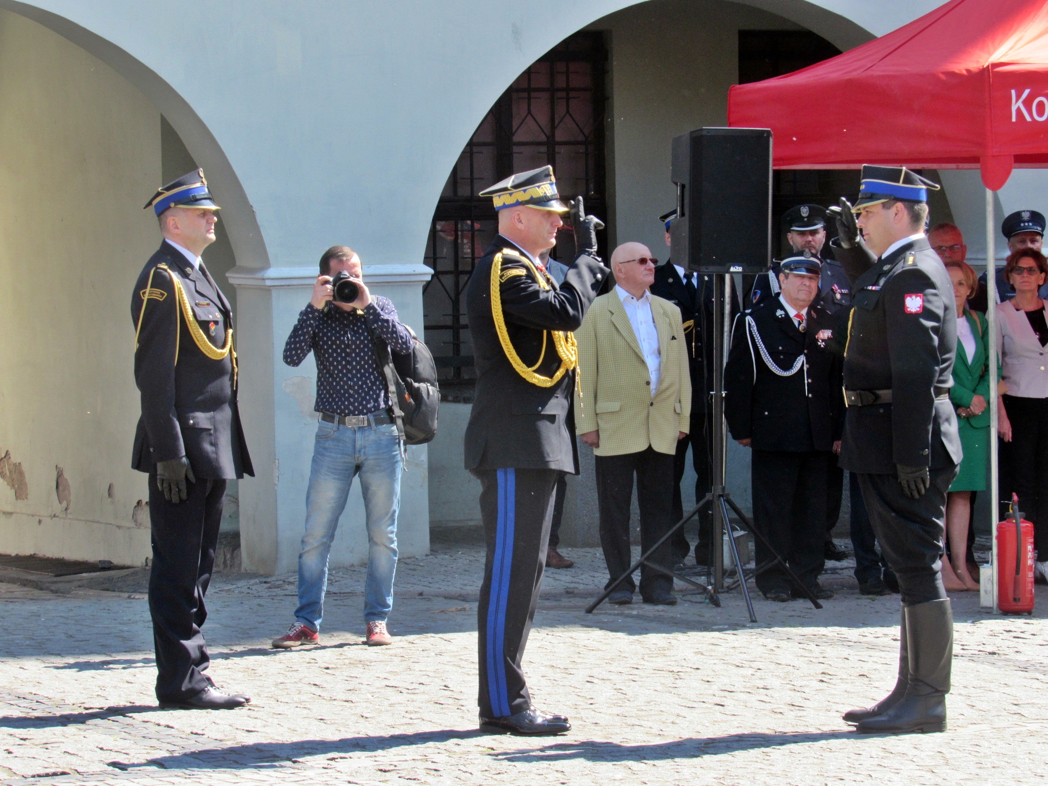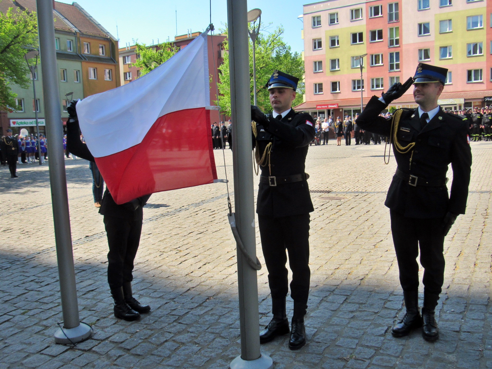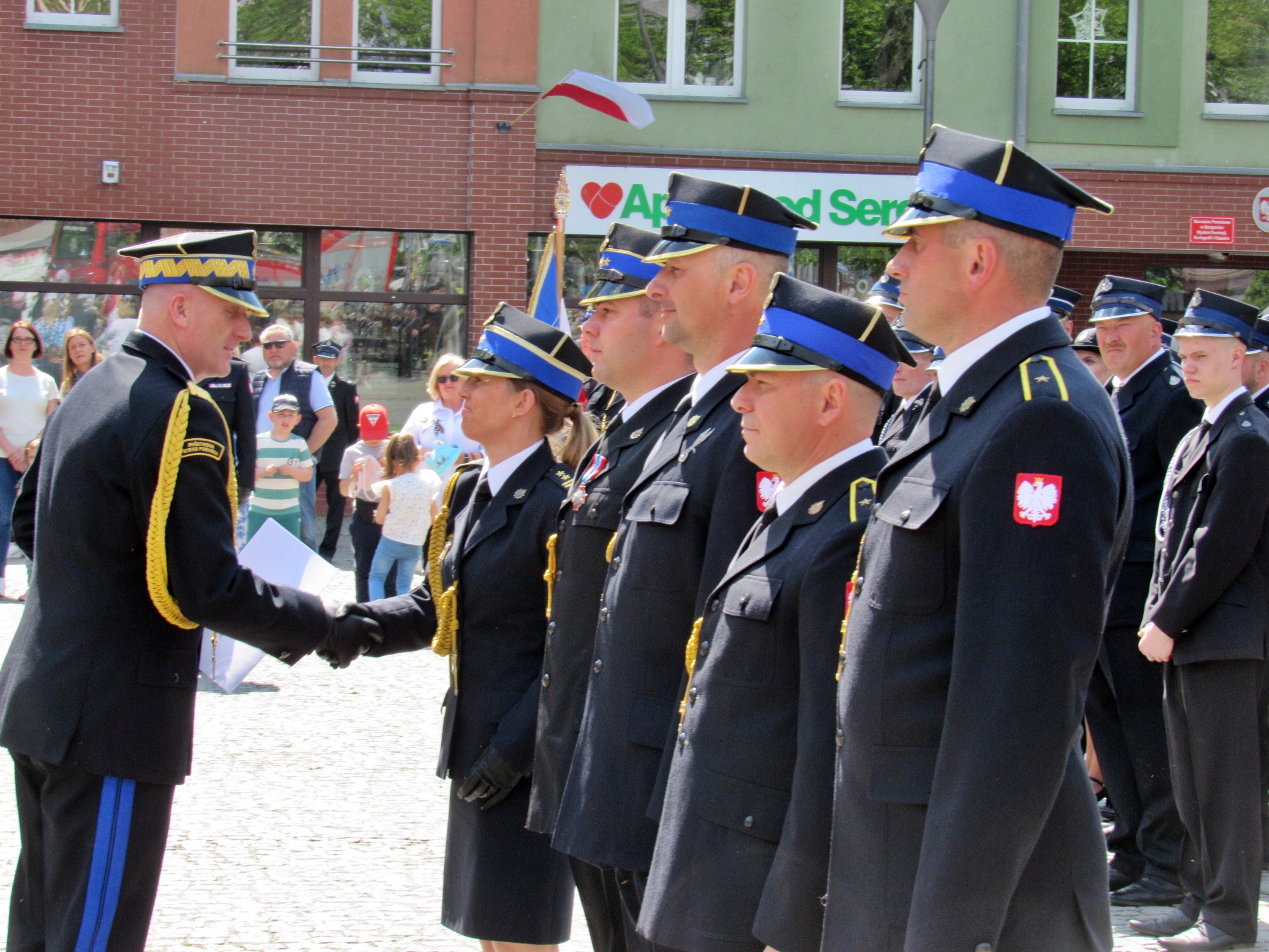 Uroczysta zbiórka związana z Dniem Strażaka odbyła się na Rynku Staromiejskim w Stargardzie. Meldunek Zachodniopomorskiemu Komendantowi Wojewódzkiemu PSP nadbrygadierowi Jarosławowi Tomczykowi złożył dowódca uroczystości st. kpt. Michał Smela. Następnie Pan Komendant w asyście dowódcy dokonał przeglądu pododdziałów.