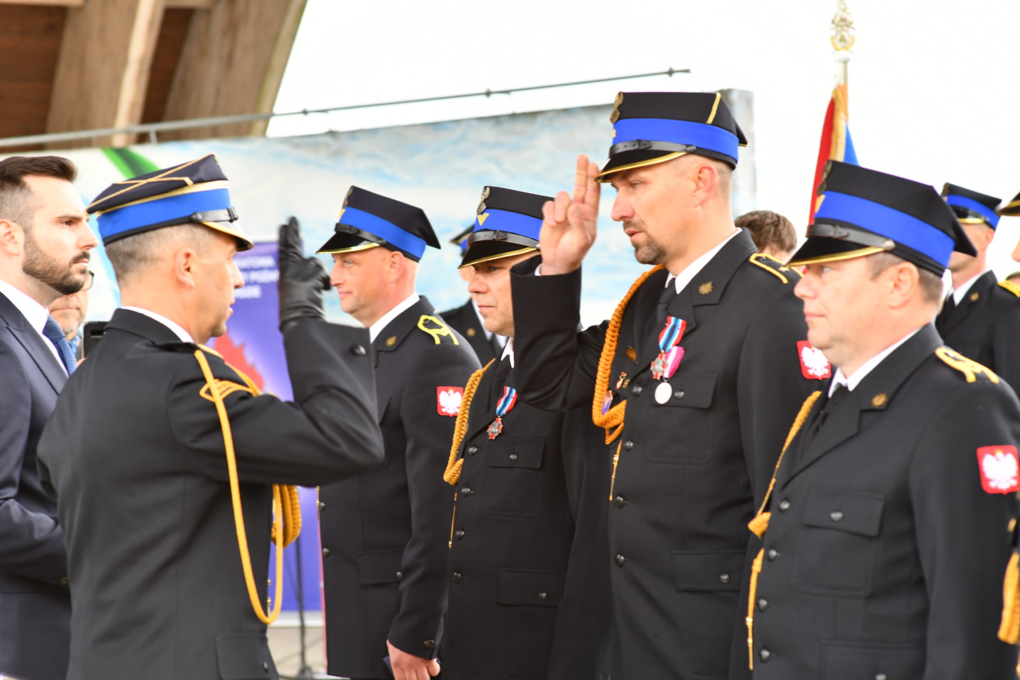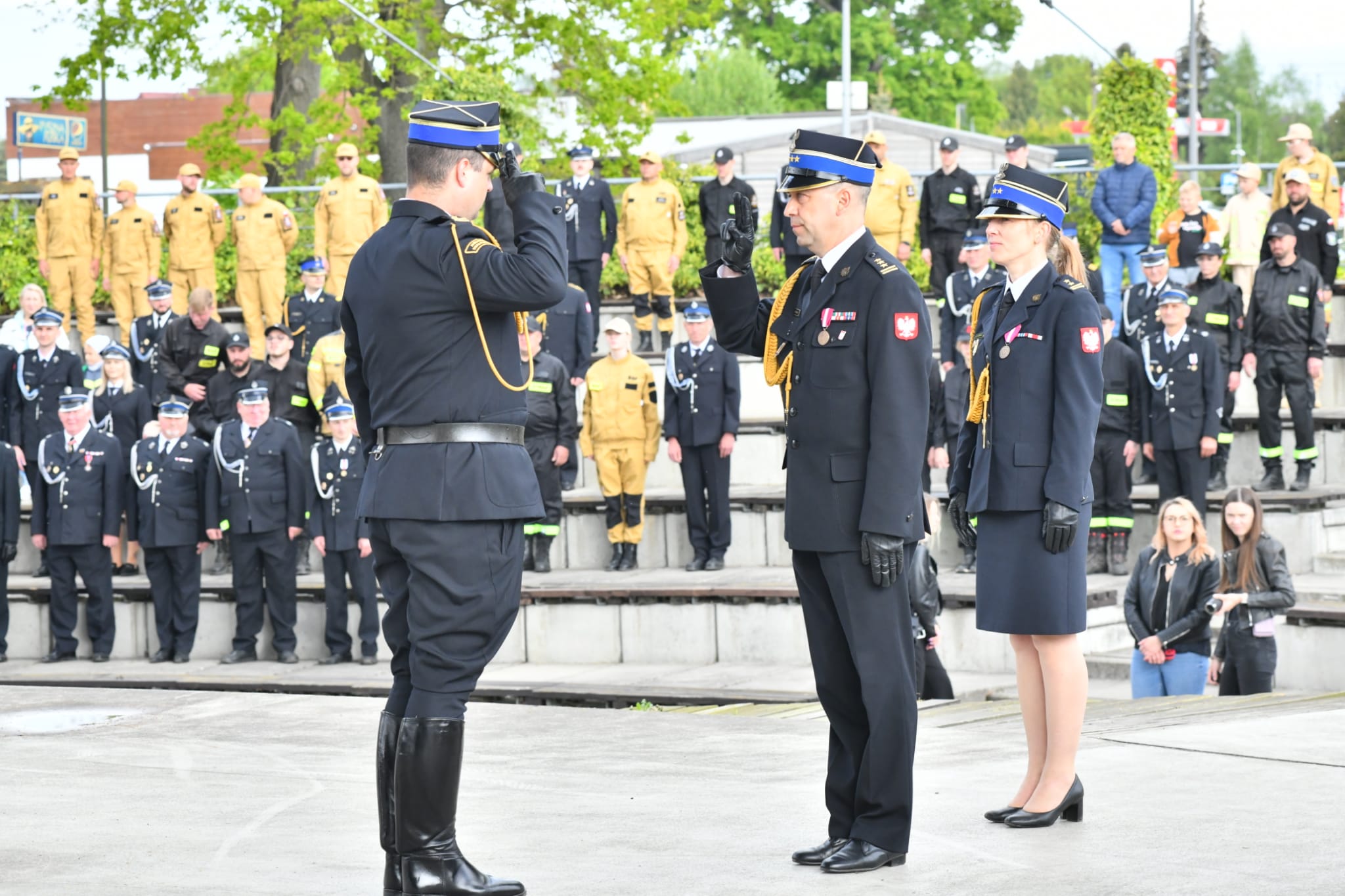 Meldunek Zachodniopomorskiemu Komendantowu Wojewódzkiemu PSP starszemu brygadierowi Mirosławowi Penderowi złożył dowódca uroczystości mł. bryg. Michał Smela.