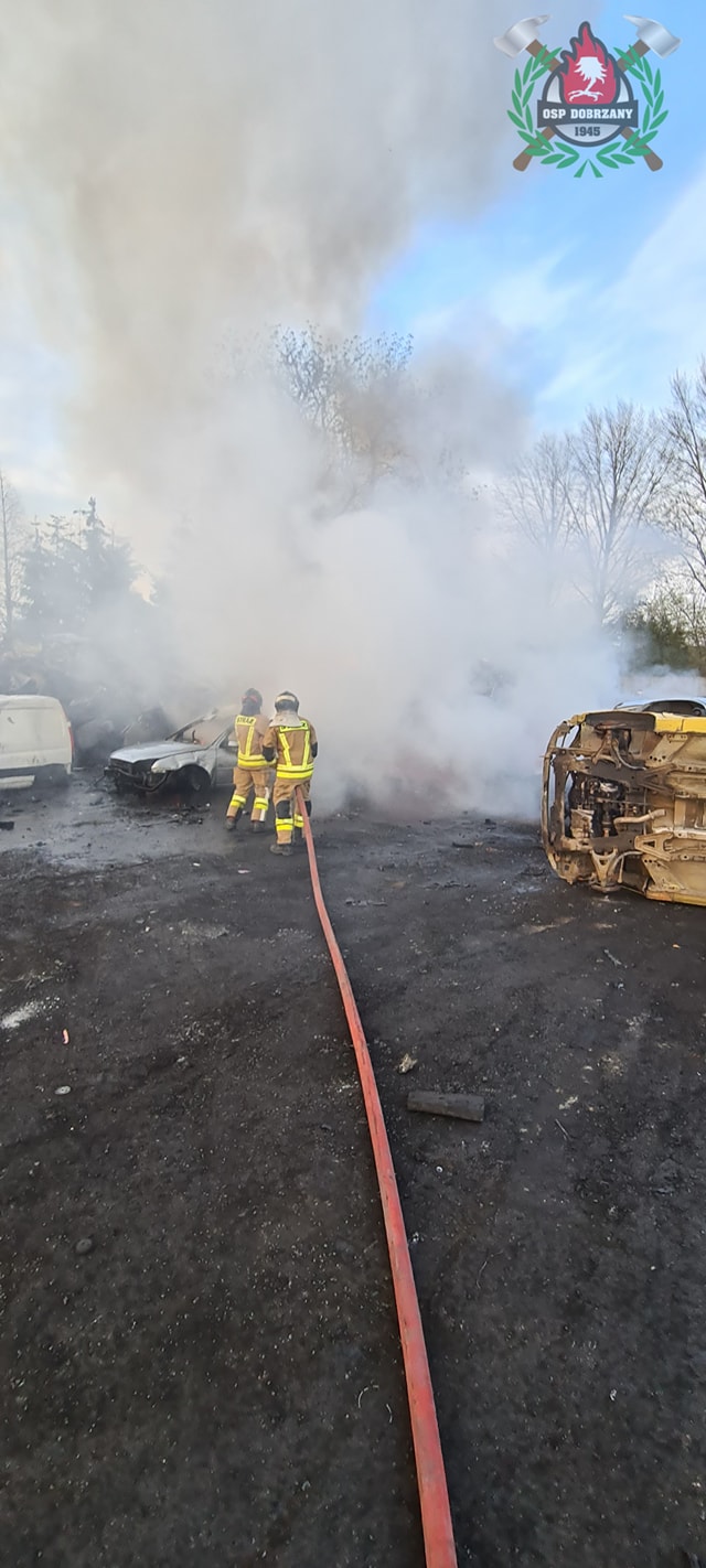 Pożar na stacji demontażu samochodów
