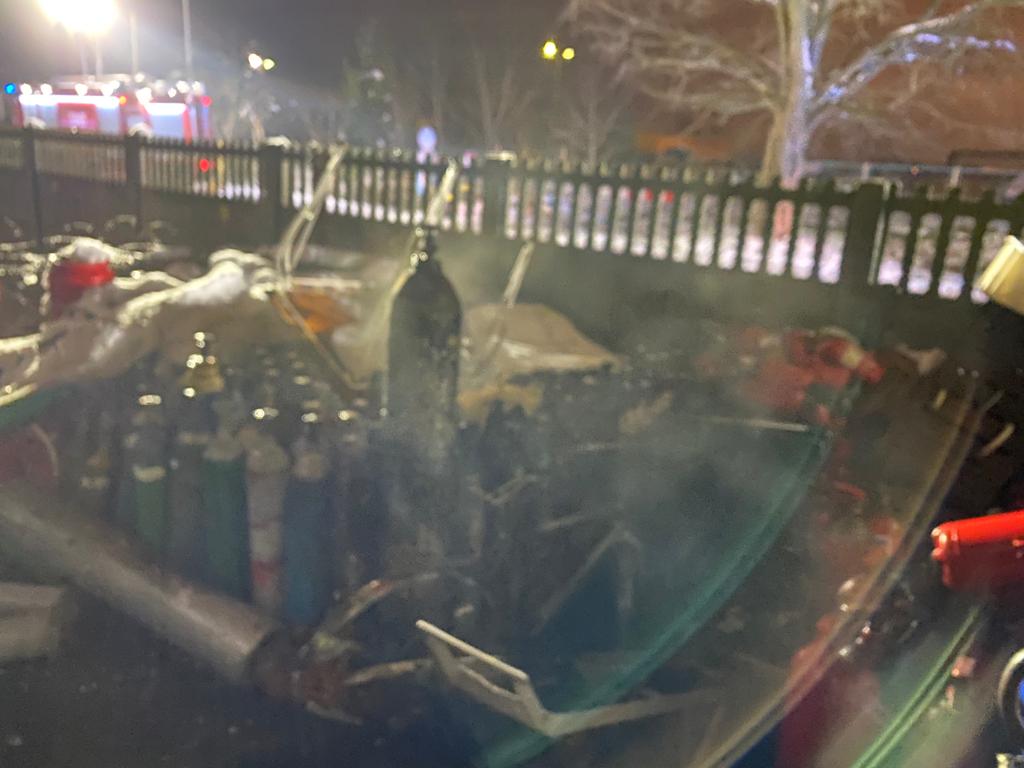 8 grudnia 2021 r. o godzinie 17:52 do do Stanowiska Kierowania Komendanta Powiatowego w Stargardzie wpłyneła informacja o pożarze na terenie zakładu usługowego p.poż.domu w Stargardzie na ul. Władysława Broniewskiego. Do zdarzenia zadysponowano dwa zastępy PSP. Po dojeździe na miejsce zdarzenia, zabezpieczono teren działań. W trakcie rozpoznania stwierdzono, że podczas nieobecności pracowników zapaliły się śmieci składowane blisko pustych butli gazowych (CO2). Działania strażaków polegały na podaniu trzech prądów wody w natarciu i późniejszym schładzaniu butli. Po ugaszeniu pożaru sprawdzono butle przy pomocy kamery termowizyjnej, nie stwierdzając zagrożenia.