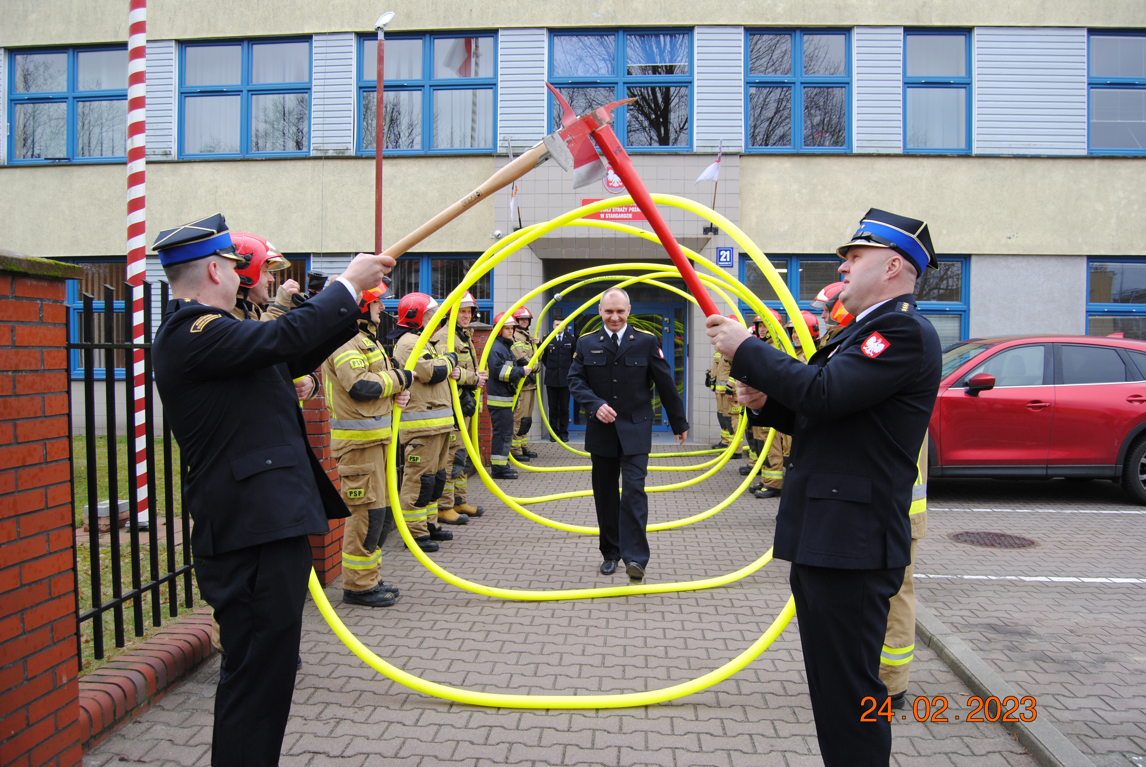 24 lutego 2023 roku na zaopatrzenie emerytalne przeszedł st. ogn. Przemysław Ślusarski – dowódcy zastępu. Z tej okazji w siedzibie KP PSP w Stargardzie odbyła się uroczysta zbiórka, podczas której mł. bryg Marek Huszla Komendant Powiatowy PSP przybliżył przebieg służby funkcjonariusza.