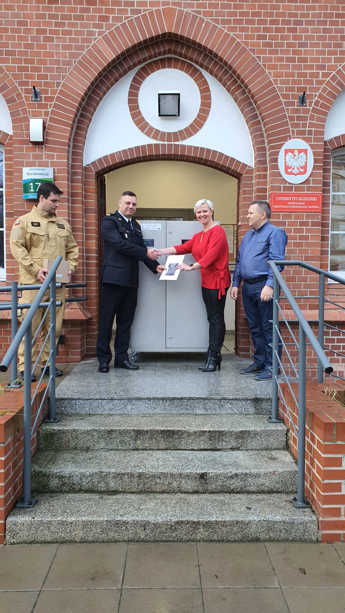 16 grudnia 2021 roku w Centrum Badań Uniwersytetu Szczecińskiego przy ulicy Narutowicza w Szczecinie odbyło się przekazanie w formie darowizny prototypu mobilnej stacji sterylizacji stworzonej przez zespół badawczy na czele z Panią Dorotą Kostrzewą - Nowak w ramach realizacji projektu „Odpowiedzialny społecznie Proto_Lab” - Regionalny Program Operacyjny Województwa Zachodniopomorskiego 2014-2020 (nabór KII/1/2021 KOMPONENT II Granty na testowanie prototypów w warunkach rzeczywistych). Prototyp był testowany w Komendzie Powiatowej Państwowej Straży Pożarnej w Stargardzie przez okres 3 miesięcy. Urządzenie jest niezwykle przydatne w dobie pandemii pozwalając na dezynfekcje i sterylizację sprzętu pożarniczego oraz środków ochrony indywidualnej. W przekazaniu uczestniczyli Komendant Powiatowy PSP w Stargardzie - mł. bryg. Łukasz Stefański oraz Dowódca JRG w Stargardzie - st. kpt. Michał Smela.