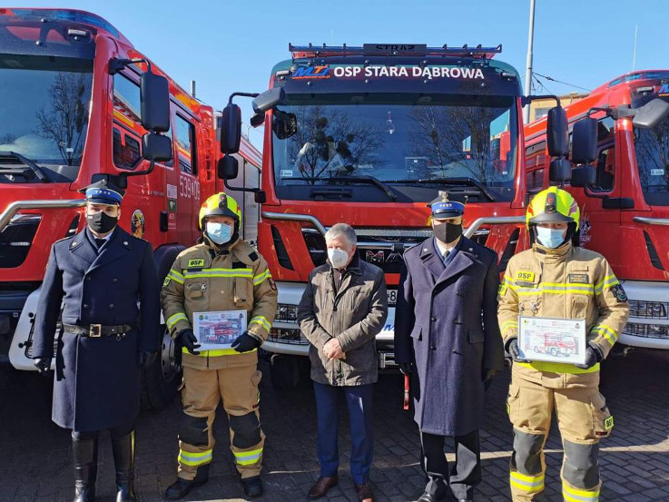 22.02.2021 r. na placu Komendy Wojewódzkiej Państwowej Straży Pożarnej w Szczecinie odbyła się uroczysta zbiórka z okazji przekazania samochodów ratowniczo – gaśniczych dla Ochotniczych Straży Pożarnych województwa zachodniopomorskiego przy udziale Komendanta Głównego Państwowej Straży Pożarnej nadbrygadiera Andrzeja Bartkowiaka oraz zaproszonych gości.