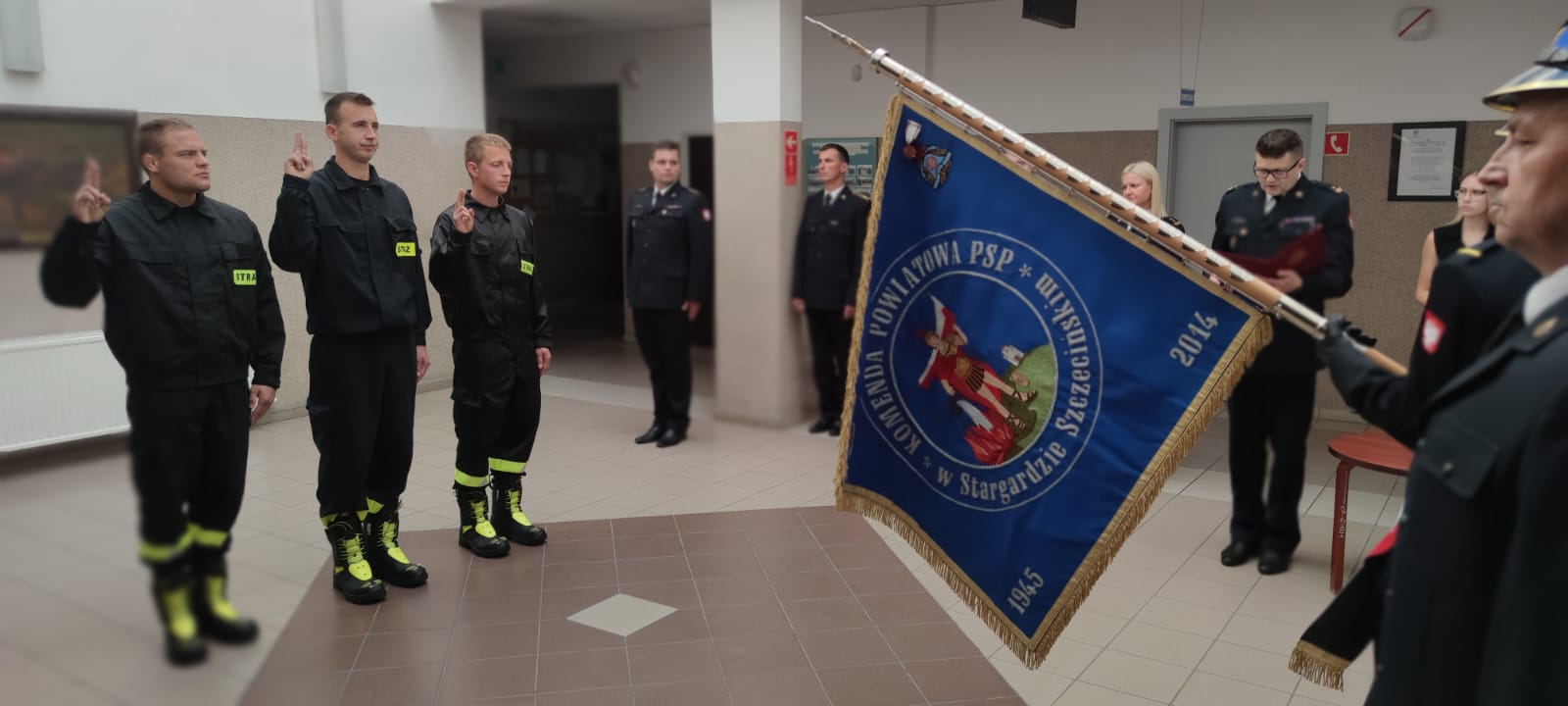 7 września 2023 roku w siedzibie Komendy Powiatowej PSP w Stargardzie odbyła się uroczystość z okazji ślubowania, które złożyli trzej strażacy przyjęci do służby przygotowawczej w Państwowej Straży Pożarnej. Ślubowanie przyjął Komendant Powiatowy PSP w Stargardzie mł. bryg. Marek Huszla.