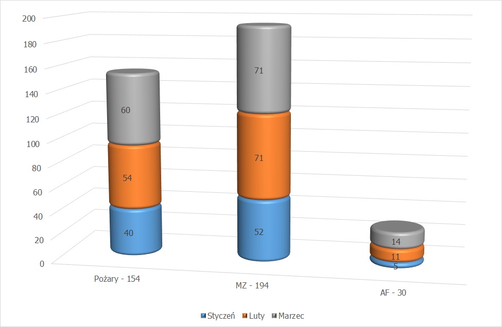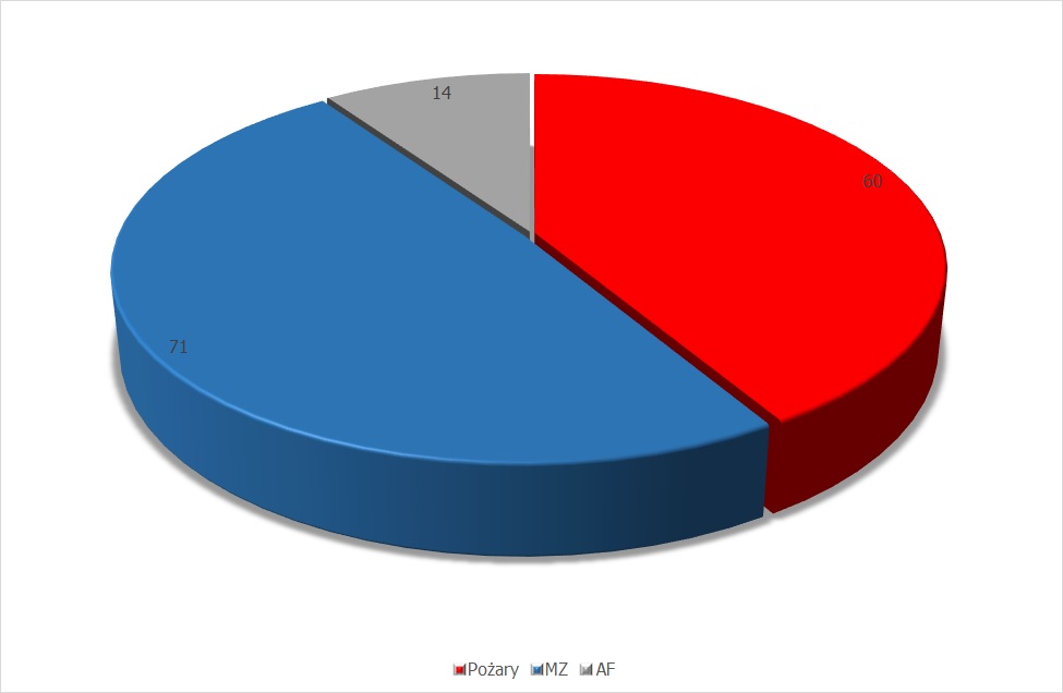 - Pożary 60, (2 pożary średnie, 58 pożarów małych)