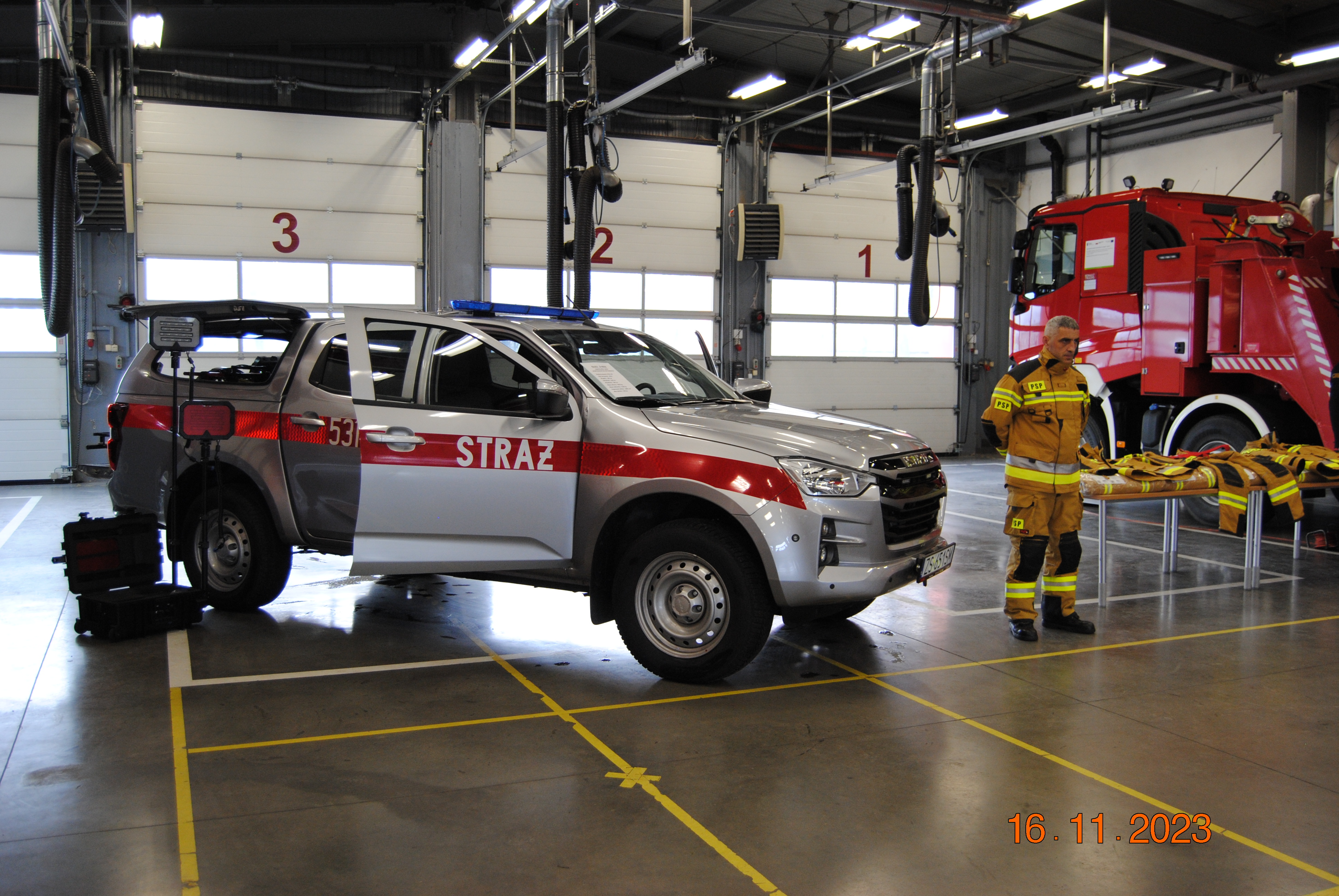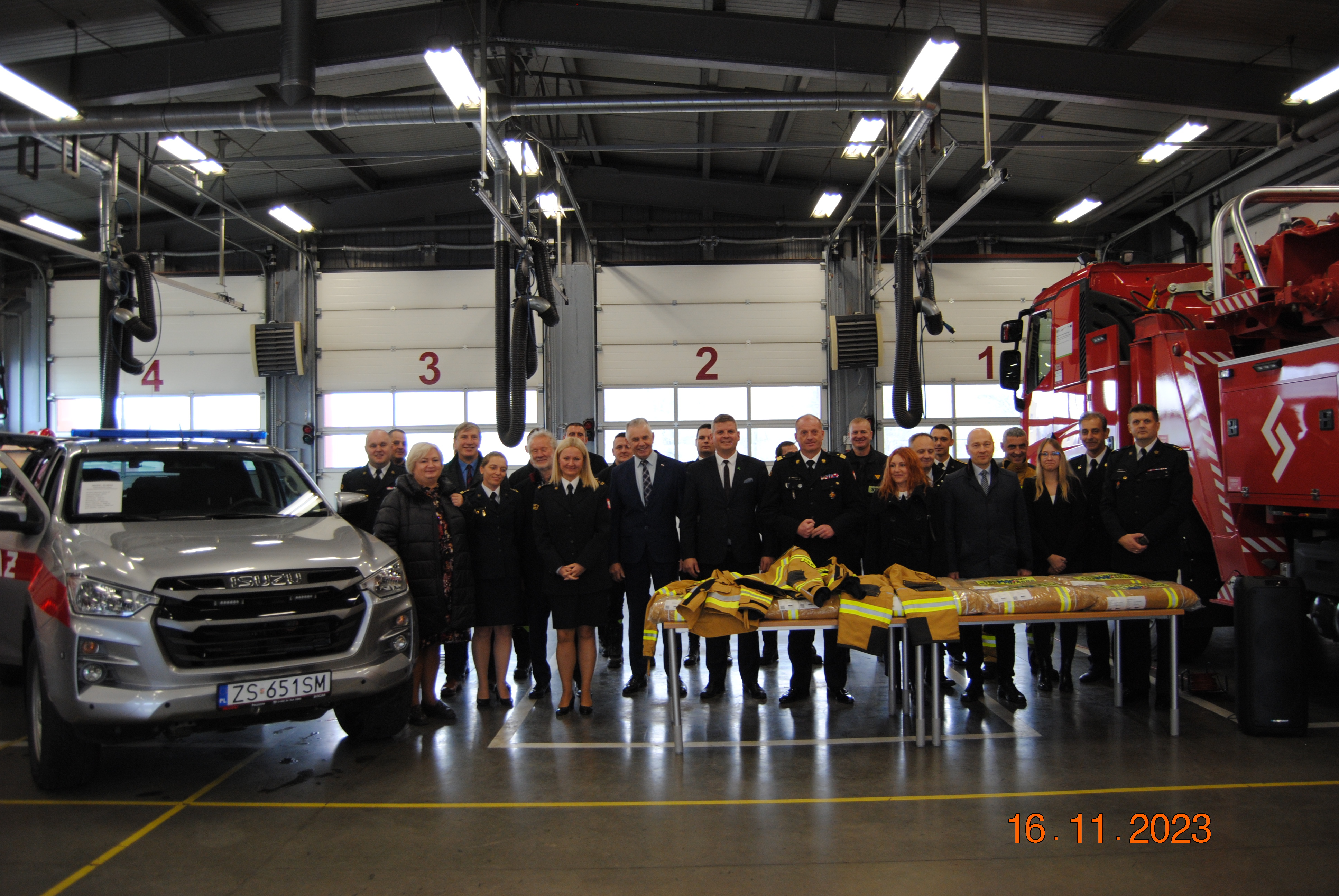 16 listopada 2023 r. o godzinie 12:00 w Komendzie Powiatowej PSP w Stargardzie odbyła się uroczysta zbiórka z okazji przekazania lekkiego samochodu rozpoznawczo-ratowniczego na podwoziu Isuzu D-Max z wyposażeniem dla Komendy Powiatowej PSP w Stargardzie. Zakup pojazdu o wartości 315 tyś zł został sfinansowany ze środków UE z projektu "Usprawnienie systemu ratownictwa na drogach - etap V" w ramach programu operacyjnego Infrastruktura i Środowisko oraz dofinsowany przez Urząd Miasta w Stargardzie kwotą 70 tyś zł.