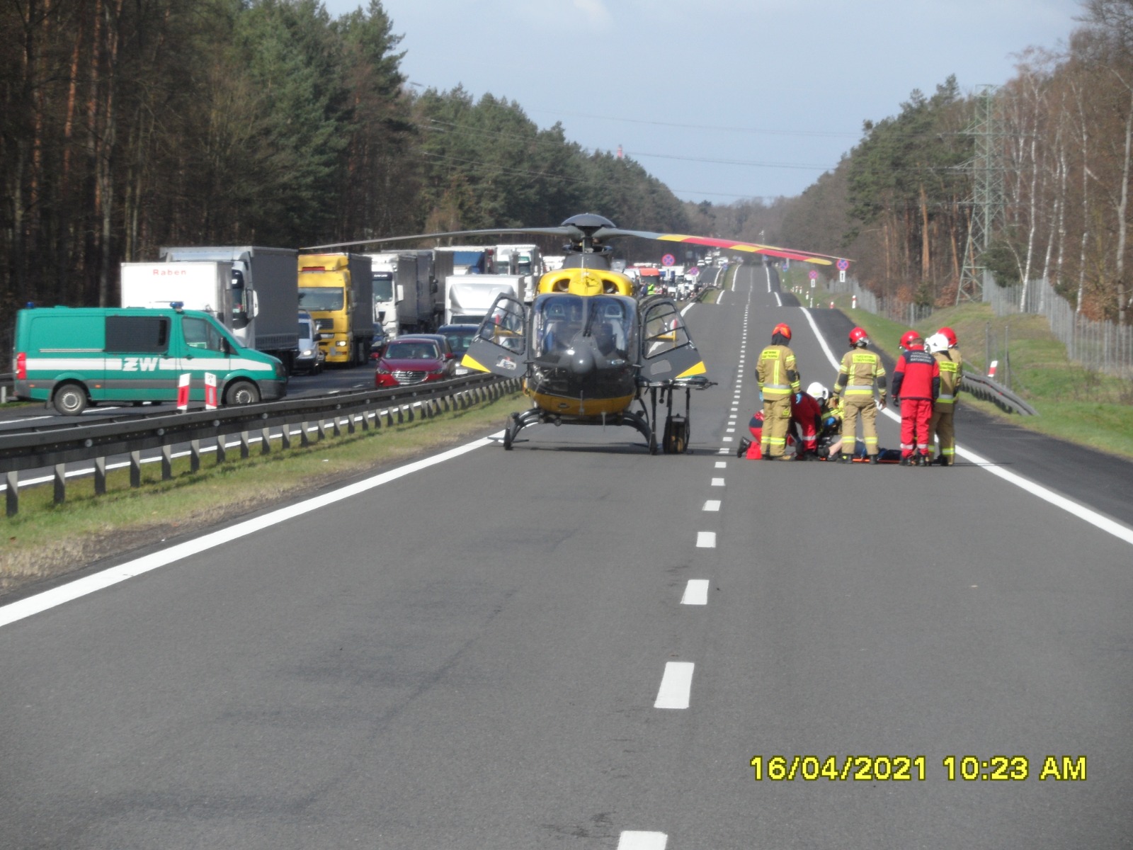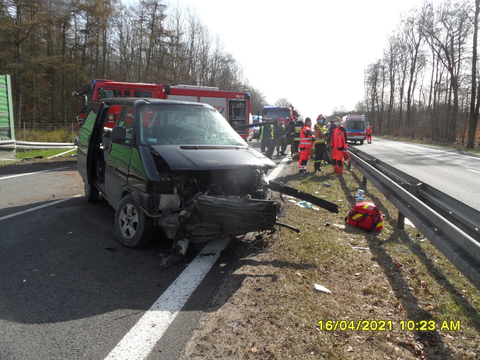 16 kwietnia 2021 r. o godzinie 09:54 do Komendy Powiatowej Państwowej Straży Pożarnejw Stargardzie wpłynęło zgłoszenie o wypadku na drodze krajowej S10. Zadysponowano 3 zastępy z JRG Stargard oraz zastęp z OSP Bielkowo. Po przybyciu na miejsce zdarzenia zabezpieczono teren działań, wykonano dostęp do poszkodowanych i udzielono pierwszej pomocy poszkodowanym wraz z zespołami ratownictwa medycznego oraz funkcjonariuszami Żandarmerii Wojskowej. Stwierdzono, że samochód dostawczy Volkswagen, którym podróżowało 5 osób uderzył w przydrożne ekrany energochłonne po czym odbił i zatrzymał się na lewym pasie jezdni. Równolegle do działań medycznych Żandarmeria Wojskowa zamknęła pasy ruchy w kierunku Stargardu, aby przelatująca załoga Lotniczego Pogotowia Ratunkowego mogła wylądować. Drogę S10 zamknięto w obu kierunkach. Wszystkie osoby zostały zabrane przez Zespoły Ratownictwa Medycznego do szpitali w celu dalszych badań. Działania zakończono o godzinie 10:34.
