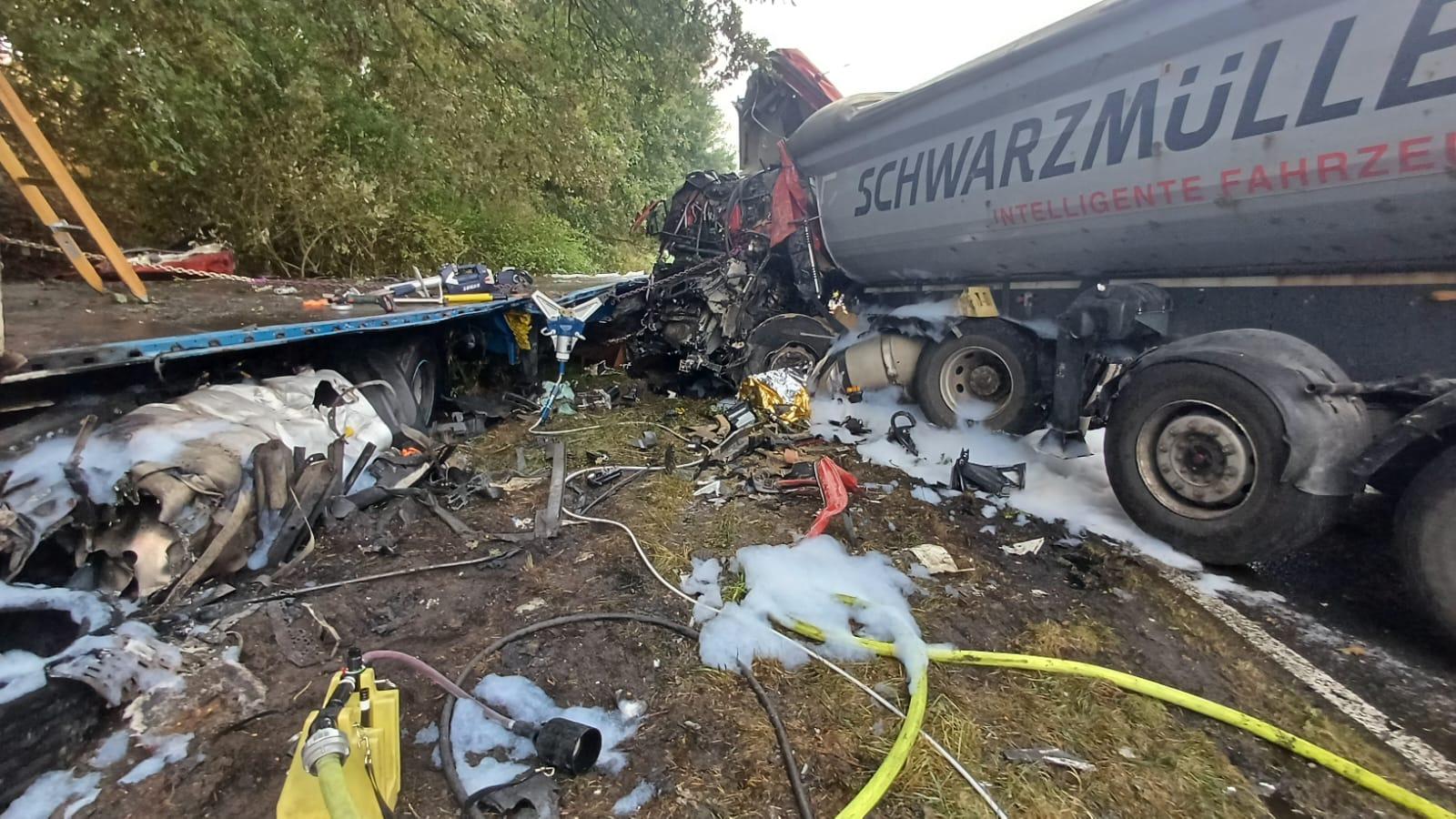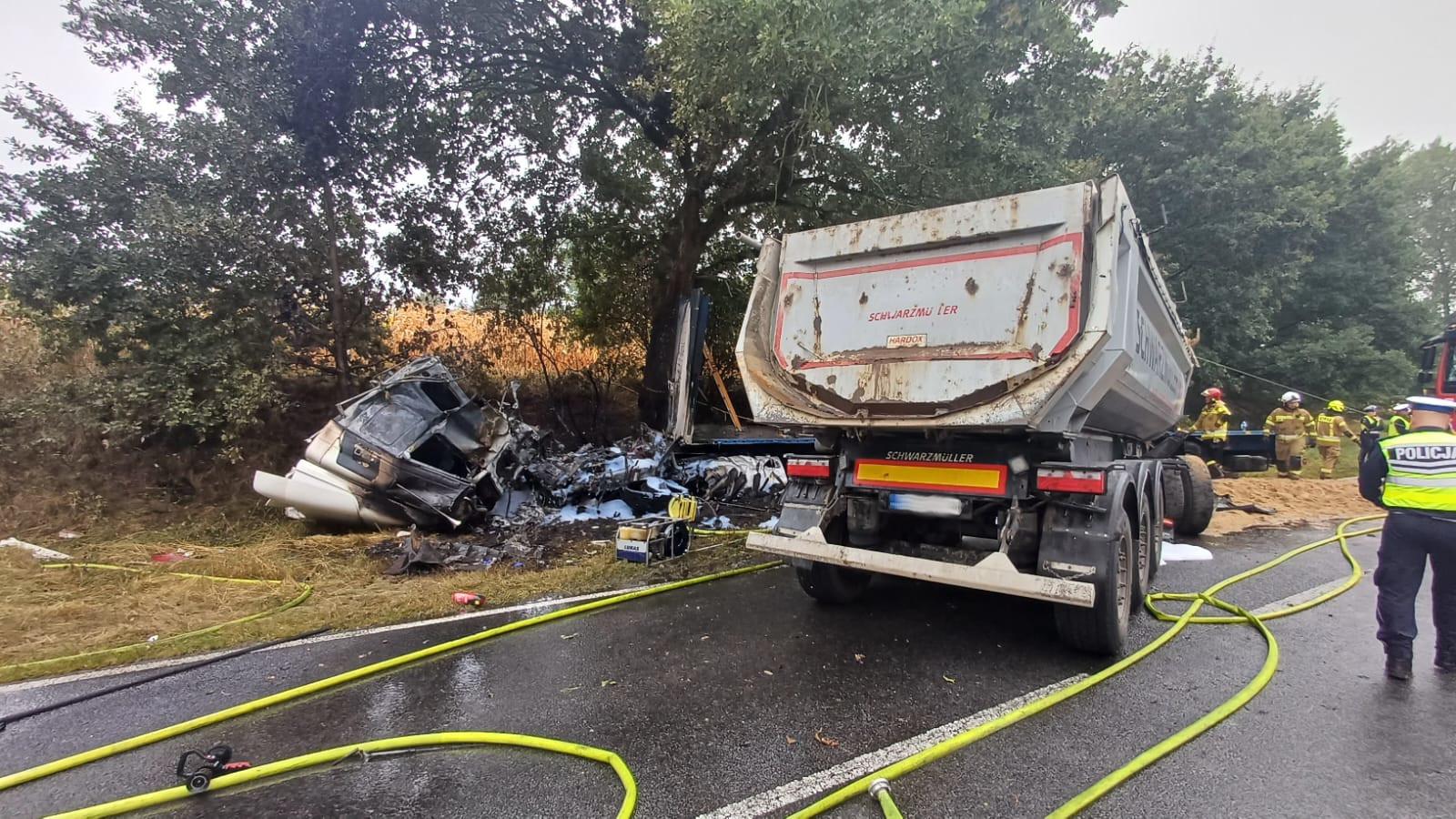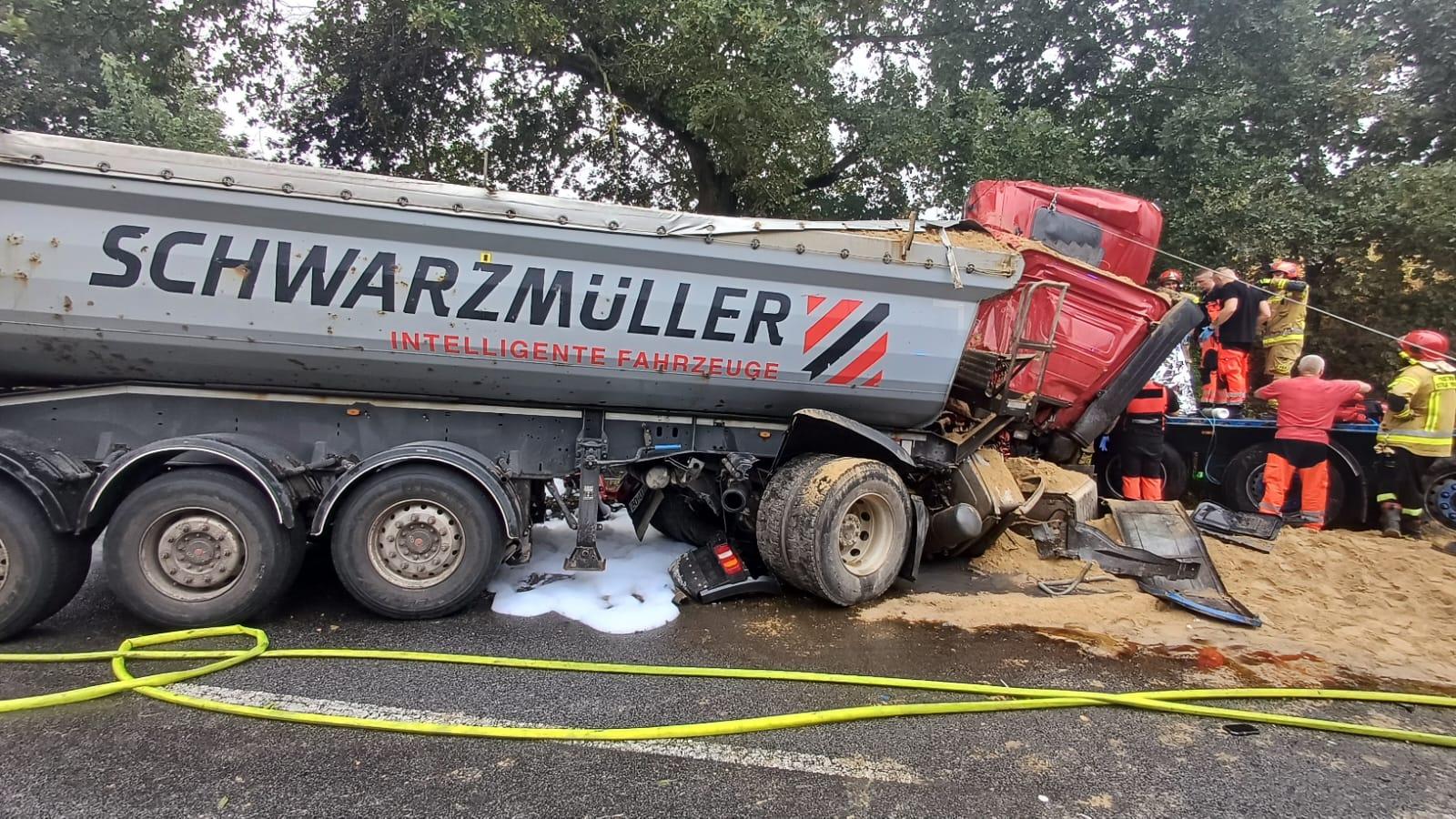 Zderzenie dwóch ciężarówek na DW142