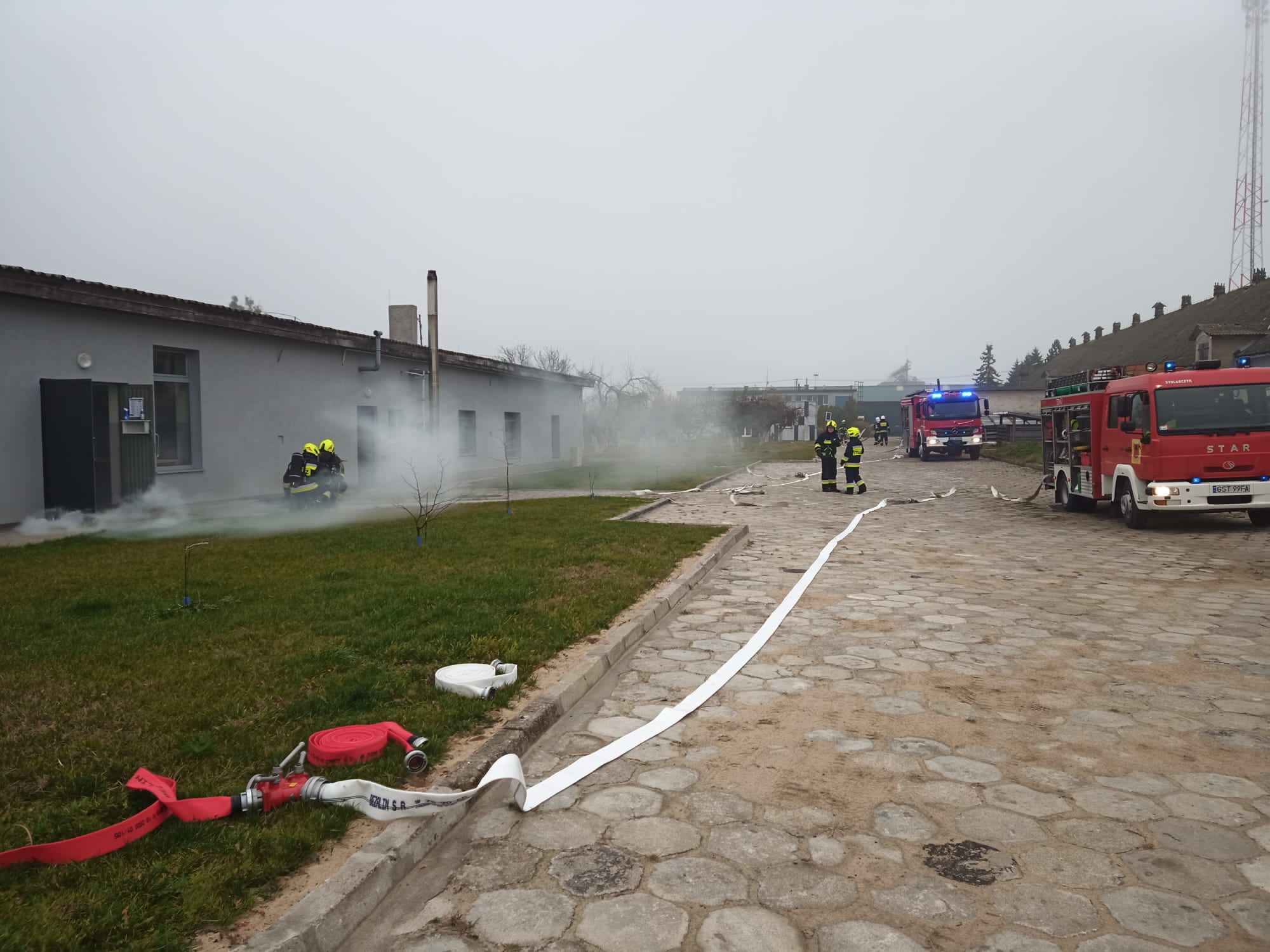 Ćwiczenia rozpoczęły się epizodem związanym z pożarem w jednym z budynków na terenie zakładu. W obiekcie tym odbywały się praktyki zawodowe dla uczniów. W chwili przybycia na miejsce zdarzenia pierwszych sił i środków zaobserwowano wydobywający się dym z budynku warsztatów szkolnych, w pobliżu hali produkcyjnej. Rozpoczęła się ewakuacja pracowników i uczniów. Pożar wybuchł w kotłowni i rozprzestrzeniał się na sąsiednie pomieszczenia. Podczas sprawdzania listy uczniów okazuje się, że brakuje jednego z nich. Nie można odnaleźć również jednego z pracowników.