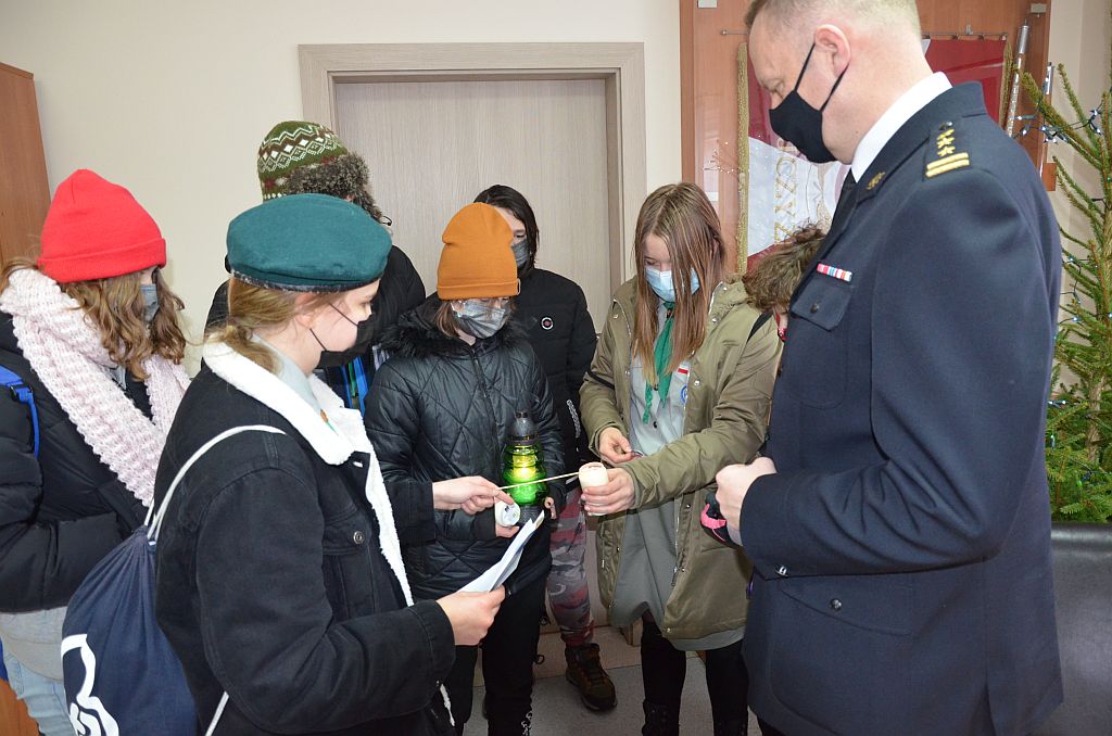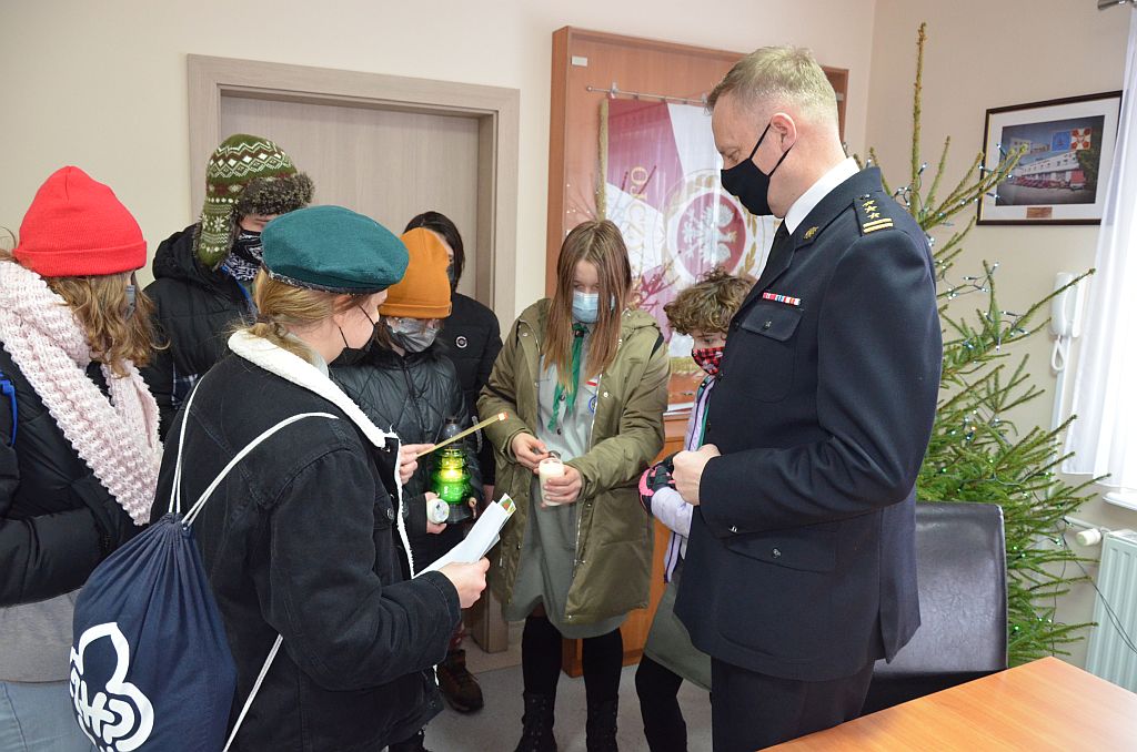 W czwartek 23 grudnia 2021 roku Komendant Powiatowy Państwowej Straży Pożarnej w Starogardzie Gdańskim gościł harcerzy z 4 Drużyny Harcerskiej Leśni ludzie Hufca Starogard Gdański. Harcerze przekazali Betlejemskie Światełko Pokoju będące symbolem miłości, nadziei i pokoju. Ta coroczna skautowa i harcerska akcja przekazywania przed Świętami Bożego Narodzenia symbolicznego ognia, przywołuje na myśl symbol zapalonego w Grocie Narodzenia Chrystusa w Betlejem. Harcerze roznoszą lampiony ze światłem do domów, osób potrzebujących, kościołów, urzędów, instytucji i innych miejsc, by finalnie zapłonęło w naszych domach podczas wieczerzy wigilijnej. Historia Betlejemskiego Światła zaczyna się w Betlejem, mieście położonym w Autonomii Palestyńskiej, które przez lata było w centrum napięć politycznych, konfliktów zbrojnych oraz ataków terrorystycznych. Właśnie tam ponad dwa tysiące lat temu narodził się Jezus Chrystus. W Grocie Narodzenia Pańskiego w Betlejem płonie wieczny ogień. To właśnie od niego co roku odpala się jedną malutką świeczkę, której płomień niesiony przez skautów w wielkiej sztafecie przez kraje i kontynenty obiega świat. Sam moment odpalania Światła w Betlejem jest wyjątkowy. Dla tej idei ludzie potrafią na chwilę się zatrzymać, powstrzymać złość i gniew. W ponad 30-letniej historii Betlejemskiego Światła Pokoju, w zmieniających się warunkach politycznych, nigdy nie zdarzyło się by Światło nie wyruszyło z Betlejem w swoją drogę. To czyni ze Światła znak pokoju, poświadczenie wzajemnego zrozumienia i symbol pojednania między narodami.