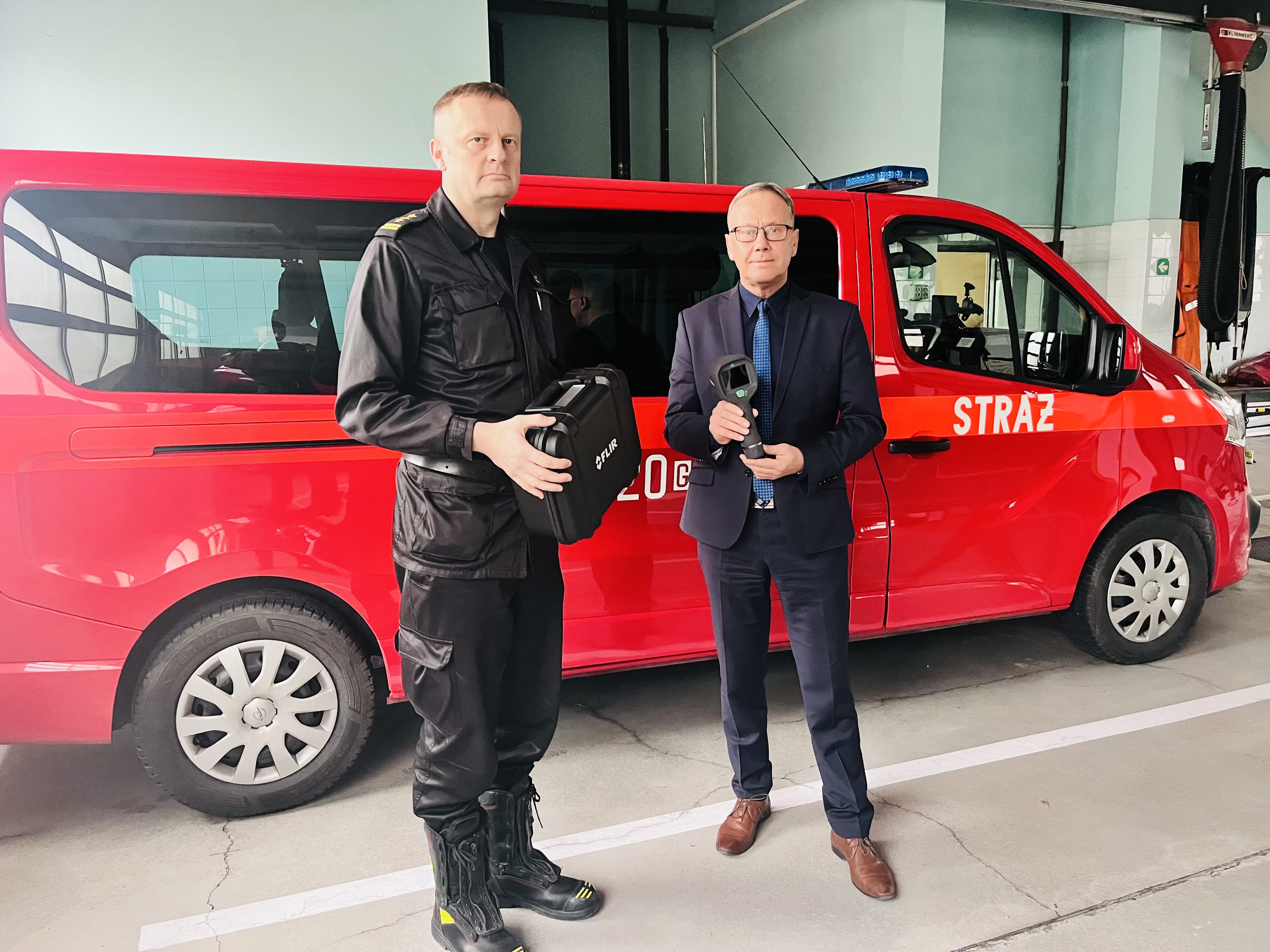 - Kamera termowizyjna FLIR K2 wraz z wyposażeniem o wartości 12 000,00 zł, która zasili pierwszowyjazdowy samochód MAN GBA 2,5/25. Kamery termowizyjne wykorzystujemy w straży pożarnej do akcji ratowniczo-gaśniczych w celu lokalizacji źródła ognia, określenia rozprzestrzeniania się pożaru oraz w działaniach poszukiwawczo-ratowniczych w celu odnalezienia osób zaginionych. Nasza komenda posiada specjalistyczna grupę ratownictwa chemiczno-ekologicznego „Starogard”, kamery znacznie ułatwiają pracę podczas działań związanych z ratownictwem chemiczno-ekologicznym m.in. do lokalizacji różnego rodzaju wypływających mediów.