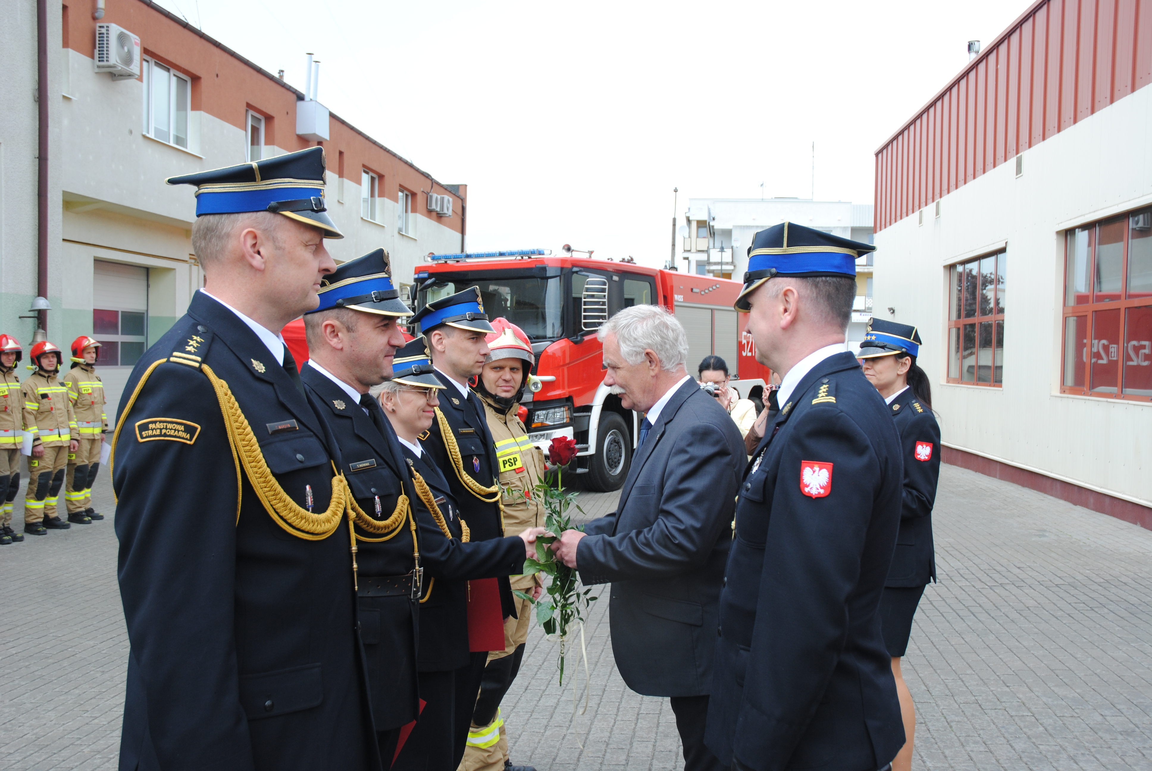 W tym roku Państwowa Straż Pożarna obchodziła szczególny jubileusz – 30 lecie powstania, która z dniem 1 lipca 1992 r. narodziła się jako zawodowa, umundurowana i wyposażona w specjalistyczny sprzęt formacja przeznaczona do walki z pożarami, klęskami żywiołowymi i innymi miejscowymi zagrożeniami. Trzy lata później powstał Krajowy System Ratowniczo-Gaśniczy, którego do dziś ważnym ogniwem są jednostki Ochotniczych Straży Pożarnych. W uroczystościach wzięło udział także czterech poprzednich komendantów, którzy przed i w okresie transformacji komendy kierowali Komendą Powiatową w Starogardzie Gdańskim. A byli to Pan Zygmunt Łachacz, Eugeniusz Błyskal, Zbigniew Kamiński i Dariusz Śmiechowski.