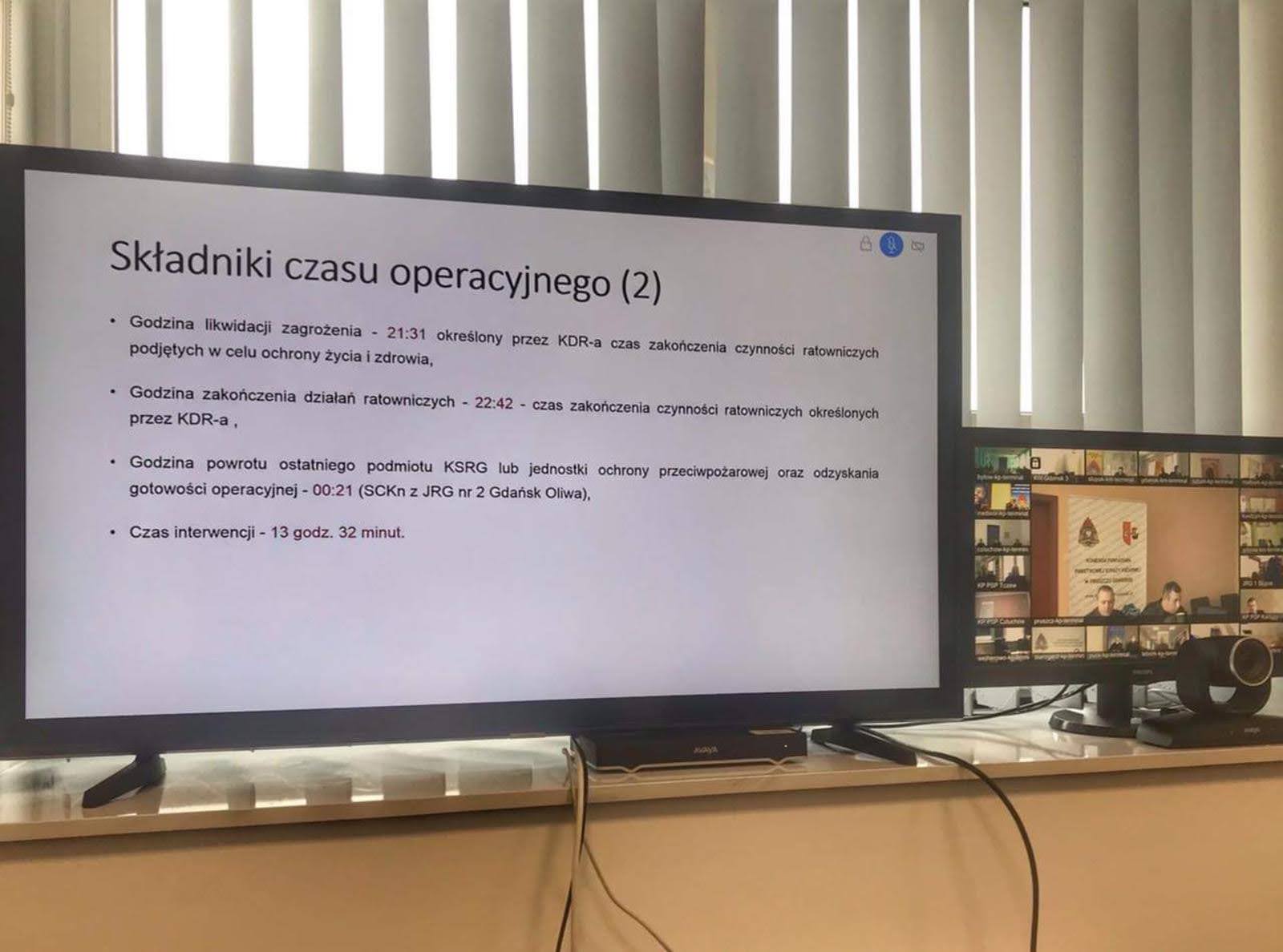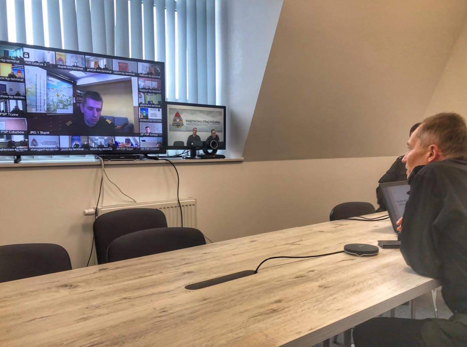 10 lutego 2021 roku w siedzibie Komendy Wojewódzkiej Państwowej Straży Pożarnej w Gdańsku za pomocą systemu wideokonferencji przperowadzono odprawę służbową dyżurnych operacyjnych stanowisk kierowania komendanta miejskiego/powiatowgo PSP województwa pomorskiego. Celem spotkania było przedstawienie oraz omówienie wybranych analiz działań ratowniczych prowadzonych podczas pandemii COVID-19.
