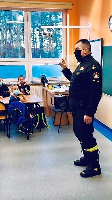 17 grudnia 2021 r. nasz funkcjonariusz mł. bryg. Marek Kamysz udał się do Publicznej Szkoły Podstawowej im. Edmunda Dywelskiego w Bytoni, aby w ramach prewencji społecznej przeprowadzić zajęcia i podzielić się swoim długoletnim doświadczeniem na temat bezpieczeństwa i ochrony przeciwpożarowej. Na zajęciach poruszono między innymi tematy: bezpieczeństwo w domu, zasada działania czujki tlenku węgla, co to jest czad i skąd się bierze, jakie zagrożenie niesie ze sobą i jak się go ustrzec. Przestrzegano jakim niebezpieczeństwem jest zabawa na zamarzniętych akwenach wodnych (jeziora, rzeki, stawy), kulig za samochodem, używanie materiałów pirotechnicznych przez dzieci.