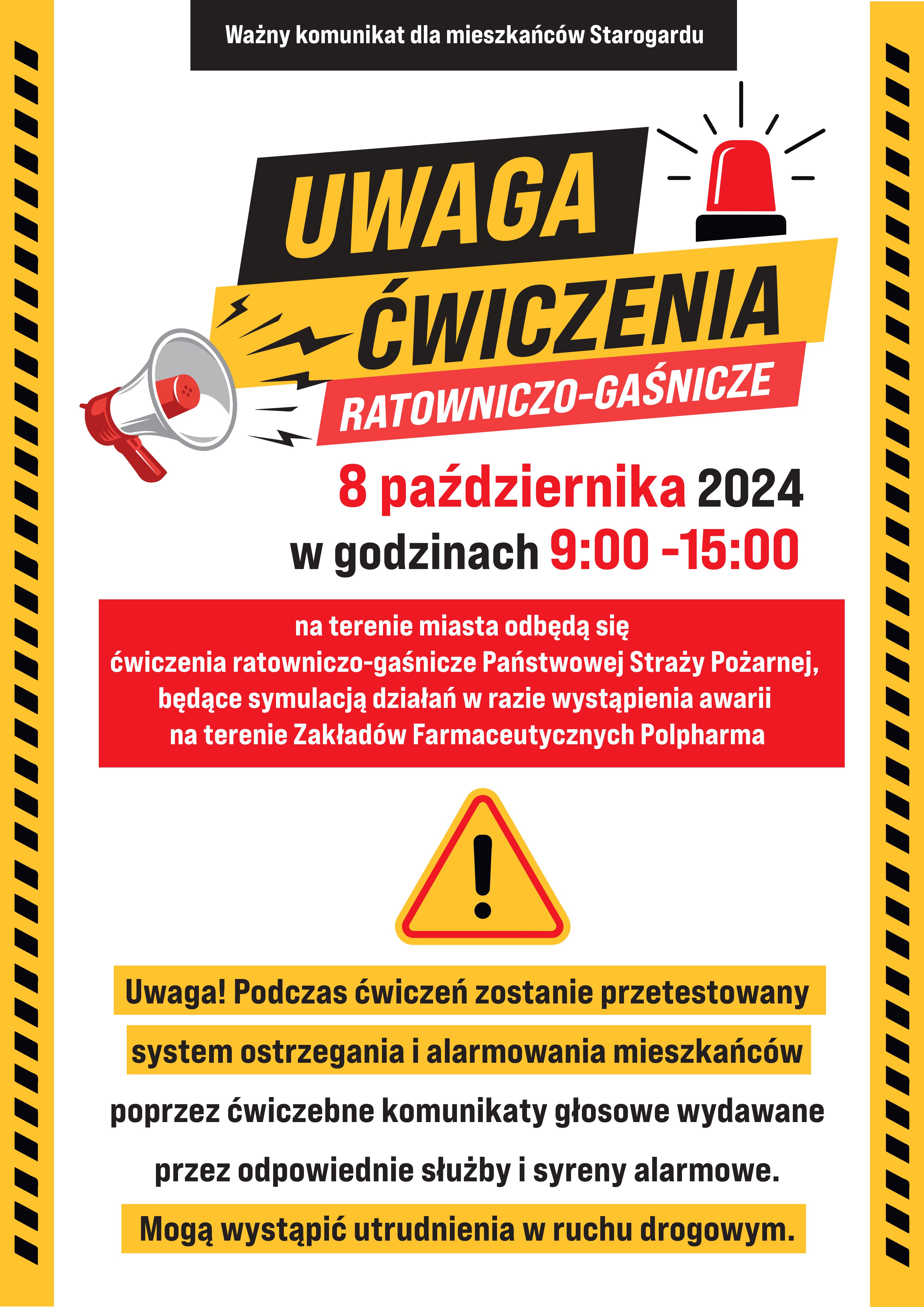UWAGA ĆWICZENIA! WAŻNY KOMUNIKAT DLA MIESZKAŃCÓW STAROGARDU GDAŃSKIEGO!