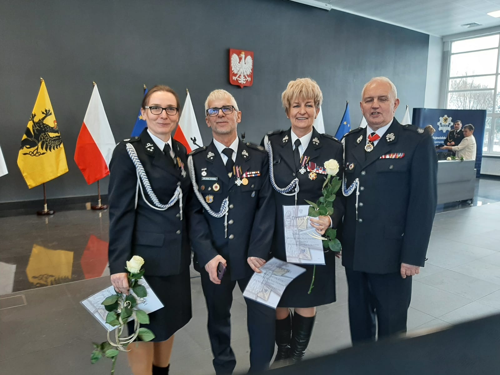 Szczególnie cieszą nas dwa wyjątkowe odznaczenia, to jest odznaczenie druha Krzysztofa Friedricha - Krzyżem Świętego Floriana oraz odznaczenie druhny Jolanty Czyryk – Odznaką Świętego Floriana Za Zasługi dla Społeczności Lokalnej. To niedawno ustanowione medale. Druhna Jolanta i Druh Krzysztof są pierwszymi druhami z terenu powiatu starogardzkiego, którzy zostali wyróżnieni tego typu medalami. Warto podkreślić, że Krzyż Świętego Floriana nadawany przez Prezydenta RP został ustanowiony w 2021 r. i jest nagrodą za wybitne osiągnięcia w realizacji zadań wynikających z bycia członkiem ochotniczej straży pożarnej. Odznaka Świętego Floriana Za Zasługi dla Społeczności Lokalnej została ustanowiona w 2022 r. jest polskim odznaczeniem cywilnym, nadawanym przez ministra właściwego do spraw wewnętrznych, którą przyznaje się osobom wyróżniającym się w podejmowaniu działań w celu ochrony życia, zdrowia, mienia lub środowiska zarówno w służbie, jak i poza nią. Wnioski na powyższe medale złożył Komendant Powiatowy PSP w Starogardzie Gdańskim, st. bryg. Tomasz Wardyn, w uznaniu szczególnych zasług druhny Jolanty Czyryk i druha Krzysztofa Friedricha na rzecz rozwoju lokalnych jednostek OSP i krzewienia tradycji strażackich.