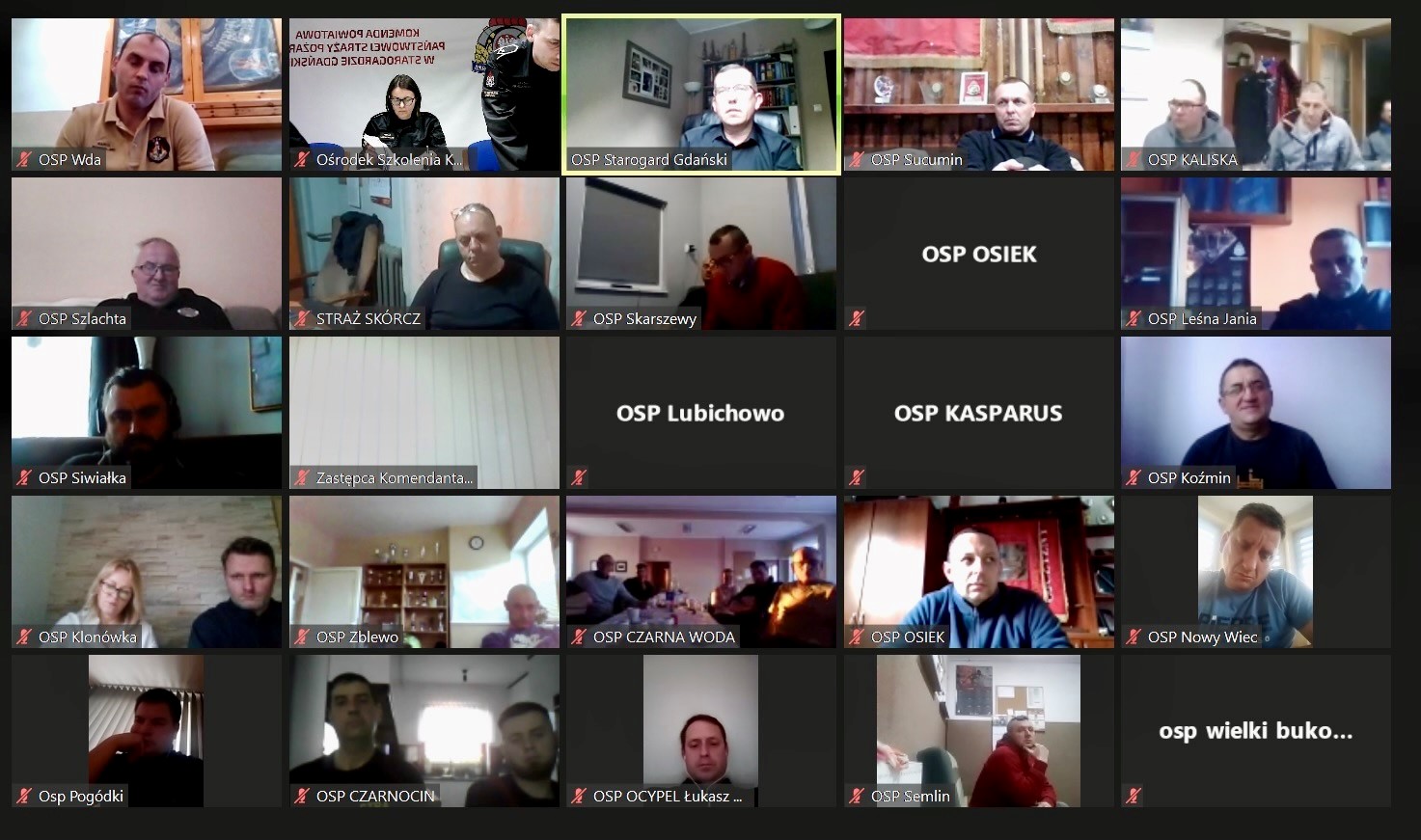 6 maja 2021 roku o godzinie 19:00 odbyło się kolejne spotkanie online z przedstawicielami Ochotniczych Straży Pożarnych powiatu starogardzkiego.