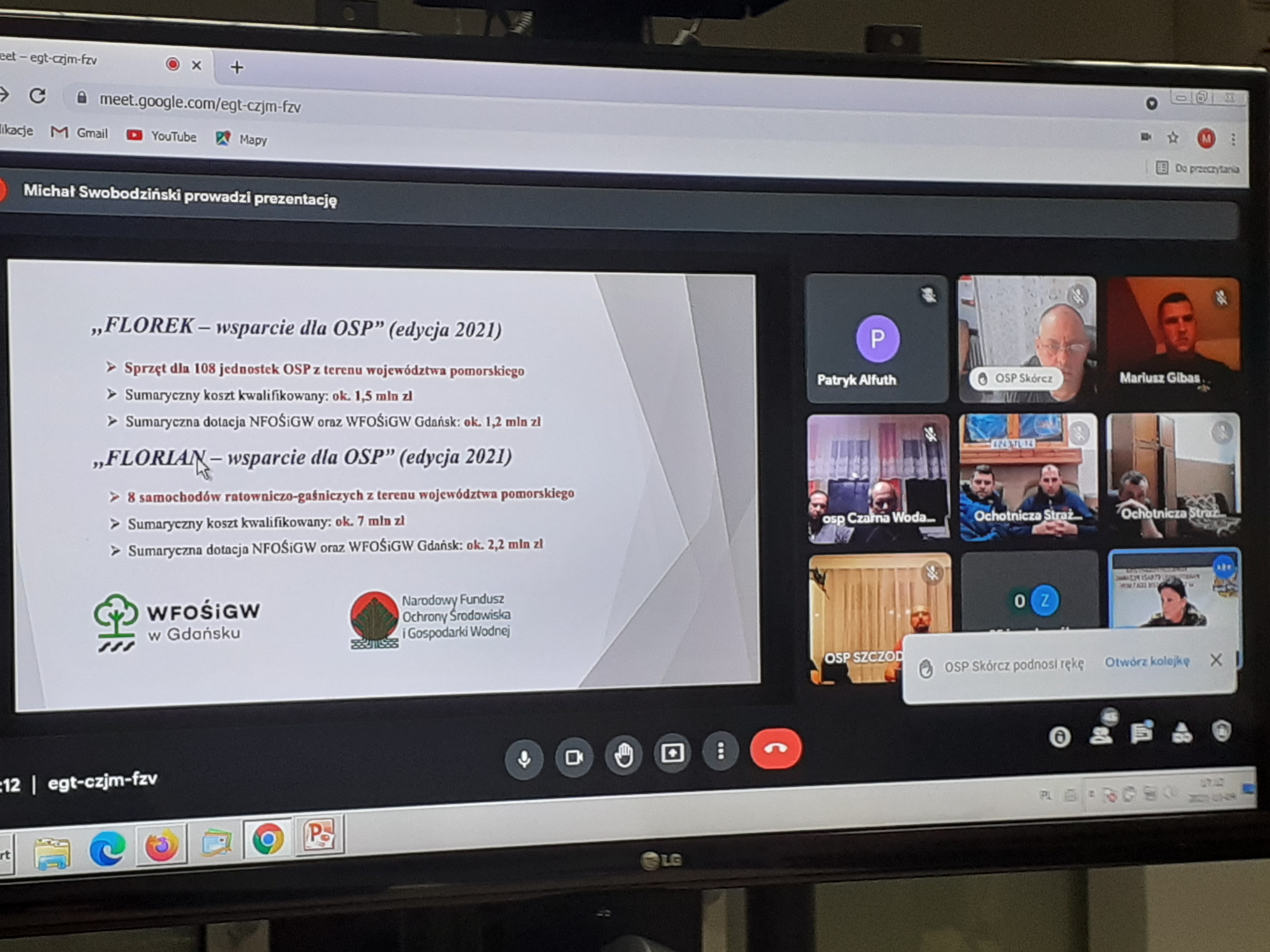 w działaniach ratowniczo-gaśniczych, szkoleń i ćwiczeń dla członków OSP oraz spraw bieżących. Odprawa została zrealizowana w oparciu o narzędzie do wideokonferencji Meet.