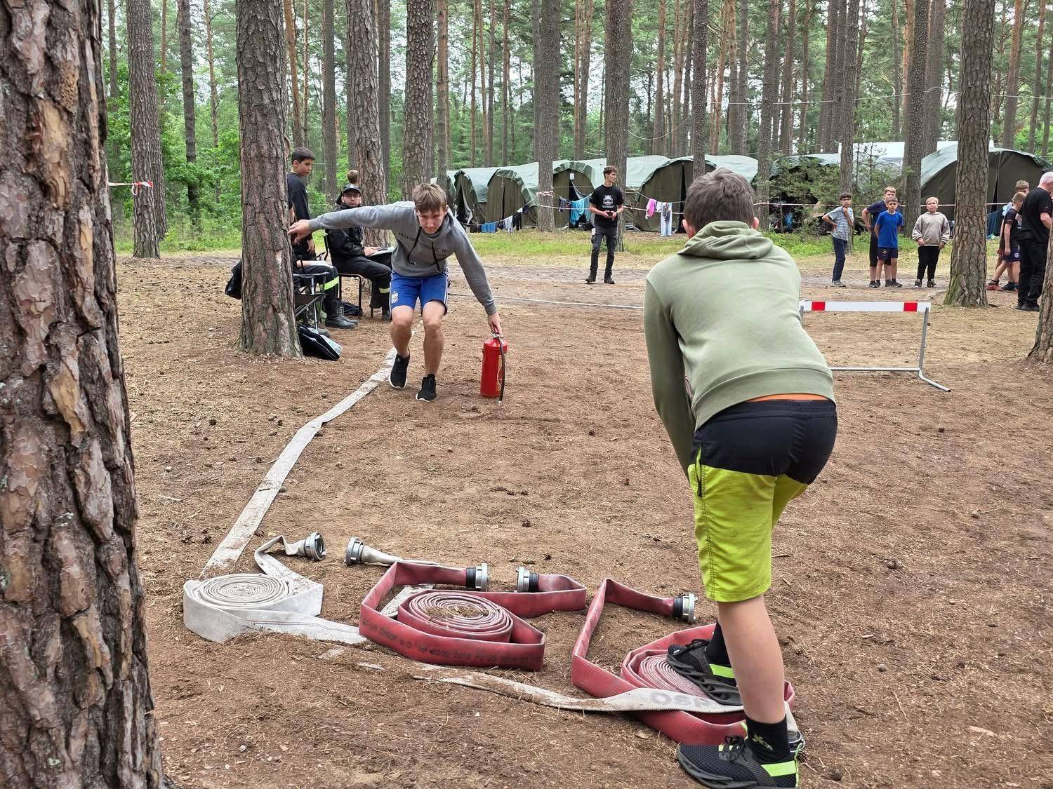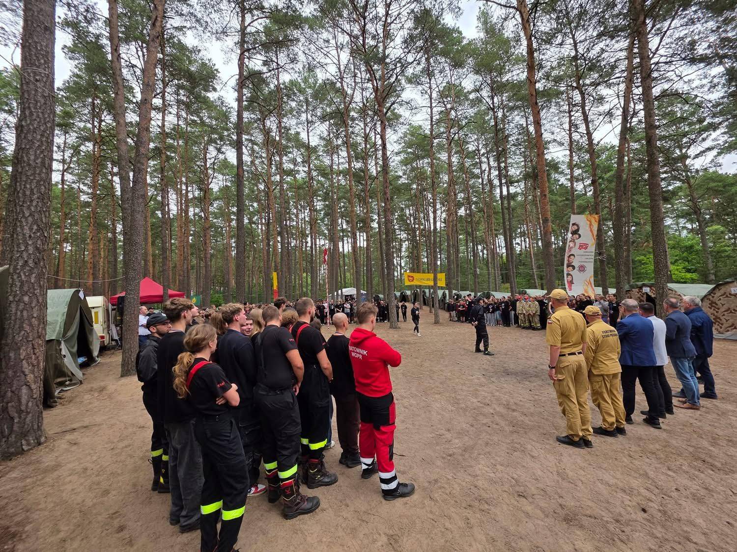 7 lipca 2025 r. na obozie dla dzieci i młodzieży z Młodzieżowych Drużyn Pożarniczych powiatu starogardzkiego gościli wyjątkowi goście – Pomorski Komendant Wojewódzki PSP st. bryg. Jacek Niewęgłowski oraz Komendant Powiatowy PSP w Starogardzie Gdańskim st. bryg. Tomasz Wardyn. Wizyta była znakomitą okazją do spotkania z młodymi druhnami i druhami, którzy na co dzień z zaangażowaniem rozwijają swoją pasję do służby w straży pożarnej. Podczas rozmów nie zabrakło wymiany doświadczeń, motywujących słów oraz wspólnej integracji, która jest niezwykle ważna w budowaniu ducha drużyny. Komendanci wyrazili swoje uznanie dla aktywności i zaangażowania młodzieży, podkreślając, jak istotna jest rola Młodzieżowych Drużyn Pożarniczych w kształtowaniu przyszłych strażaków. Szczególne słowa podziękowania skierowali również do opiekunów i organizatorów obozu – za ich trud, poświęcenie i codzienną pracę wychowawczą.