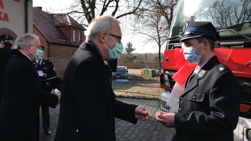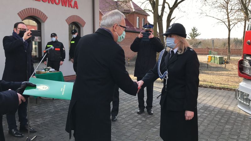 WRĘCZENIE AKTU WŁĄCZENIA DO KRAJOWEGO SYSTEMU RATOWNICZO-GAŚNICZEGO OSP KLONÓWKA WRAZ Z PRZEKAZANIEM ŚREDNIEGO SAMOCHODU RATOWNICZO-GAŚNICZEGO