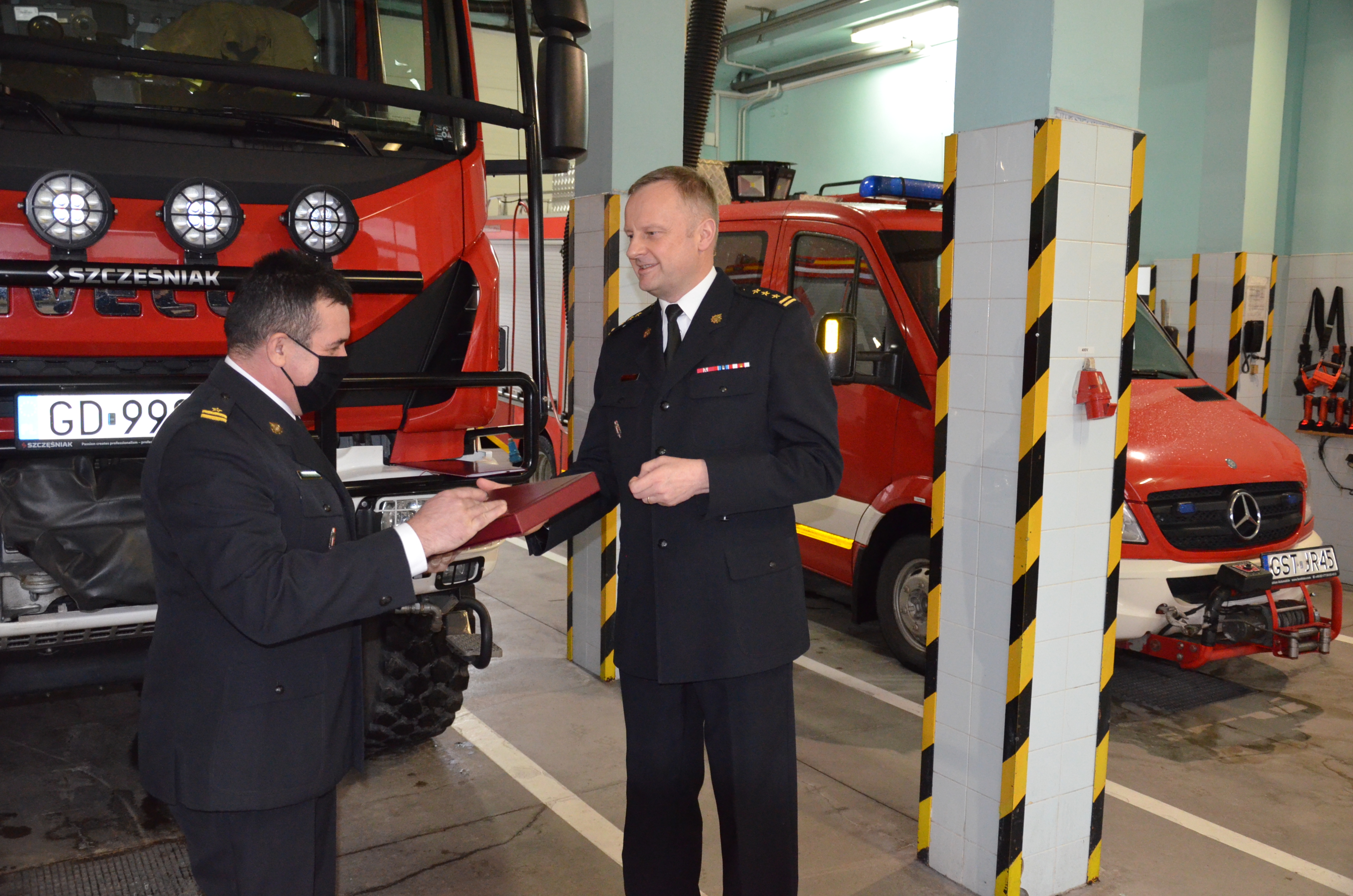 27 stycznia 2022 r. w Komendzie Powiatowej PSP w Starogardzie Gdańskim odbył się uroczysty apel w związku z przejściem na zaopatrzenie emerytalne Pana mł. bryg. Marka Kamysza, dowódcy zmiany w tut. jednostce. Pan mł. bryg. Marek Kamysz związany jest z ochroną przeciwpożarową od dnia 01 września 1992 r., kiedy to rozpoczął Szkołę Chorążych Pożarnictwa w Poznaniu. Jako absolwent szkoły pożarniczej z dniem 01 kwietnia 1994 r. został mianowany na stanowisko starszego ratownika w Komendzie Rejonowej PSP w Starogardzie Gdańskim. Kolejno awansował na coraz wyższe stanowiska służbowe. W 1995 r. rozpoczął niestacjonarne studia pierwszego stopnia dla strażaków w służbie stałej w Szkole Głównej Służby Pożarniczej w Warszawie. Kwalifikacje oficerskie uzyskał 1999 r. W 2012 r. ww. uzupełnił kwalifikacje o tytuł ratownika medycznego. W 2018 r. mł. bryg. Marek Kamysz ukończył studia podyplomowe w Wyższej Szkole Biznesu i Nauk o Zdrowiu w zakresie BHP, a w 2019 r. w zakresie przygotowania pedagogicznego. Funkcjonariusz o wysokim poczuciu odpowiedzialności oraz o wysokiej kulturze osobistej. W kontaktach służbowych grzeczny, taktowny, zawsze przestrzegający zasad etyki zawodowej. Pan mł. bryg. Marek Kamysz w 2020 r. odznaczony został przez Prezydenta Rzeczypospolitej Polskiej Srebrnym Medalem za Długoletnią Służbę, a w 2018 r. przez Ministra Spraw Wewnętrznych i Administracji Srebrną Odznaką „Zasłużony dla Ochrony Przeciwpożarowej”.