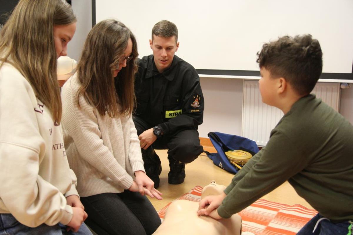Strażacy z Komendy Powiatowej Państwowej Straży Pożarnej w Staszowie oceniali umiejętności z zakresu udzielania pierwszej pomocy. W trakcje wykonywania zadań konkursowych przez uczniów strażacy przekazywali im wiedzę jak należy właściwie ocenić sytuację, wezwać służby ratownicze, prawidłowo zabezpieczyć teren działań oraz prowadzić czynności z kwalifikowanej pierwszej pomocy.