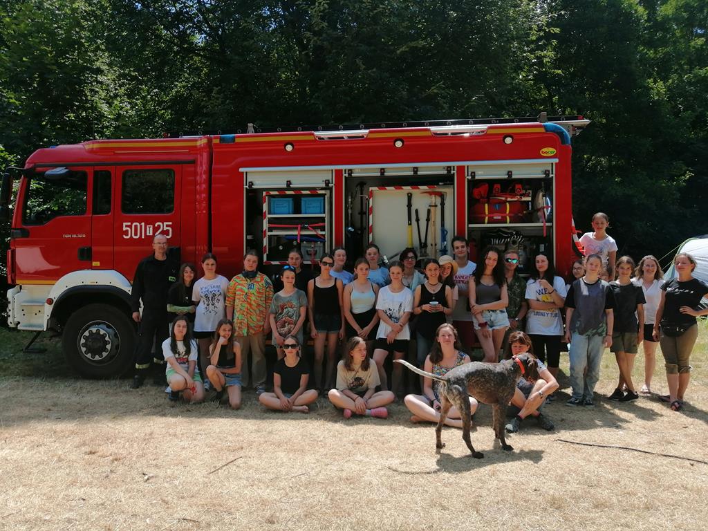 W trakcie spotkania strażacy omówili zagadnienia związane z zagrożeniami jakie mogą pojawić się na obozowisku, domu lub innym miejscu, jak unikać zagrożeń związanych z wypoczynkiem nad wodą. Zaprezentowano również pojazd i sprzęt ratowniczy znajdujący się na samochodzie pożarniczym. Zostało również przeprowadzone szkolenie z zakresu użytkowania sieci UKF dla opiekunów obozu.