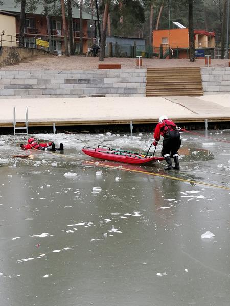 Szkolenie składało się z dwóch części: teoretycznej i praktycznej. W części teoretycznej omówiono zasady BHP podczas postepowania przy działaniach ratowniczych na zamarzniętych akwenach wodnych oraz sposoby podejmowania osób z wody przy użyciu sań lodowych. Po omówionym instruktażu przystąpiono do części praktycznej polegającej na przećwiczeniu różnych scenariuszy prowadzenia działań ratowniczych, które można zastosować w sytuacji podejmowania osób poszkodowanych pod którymi załamał się lód.